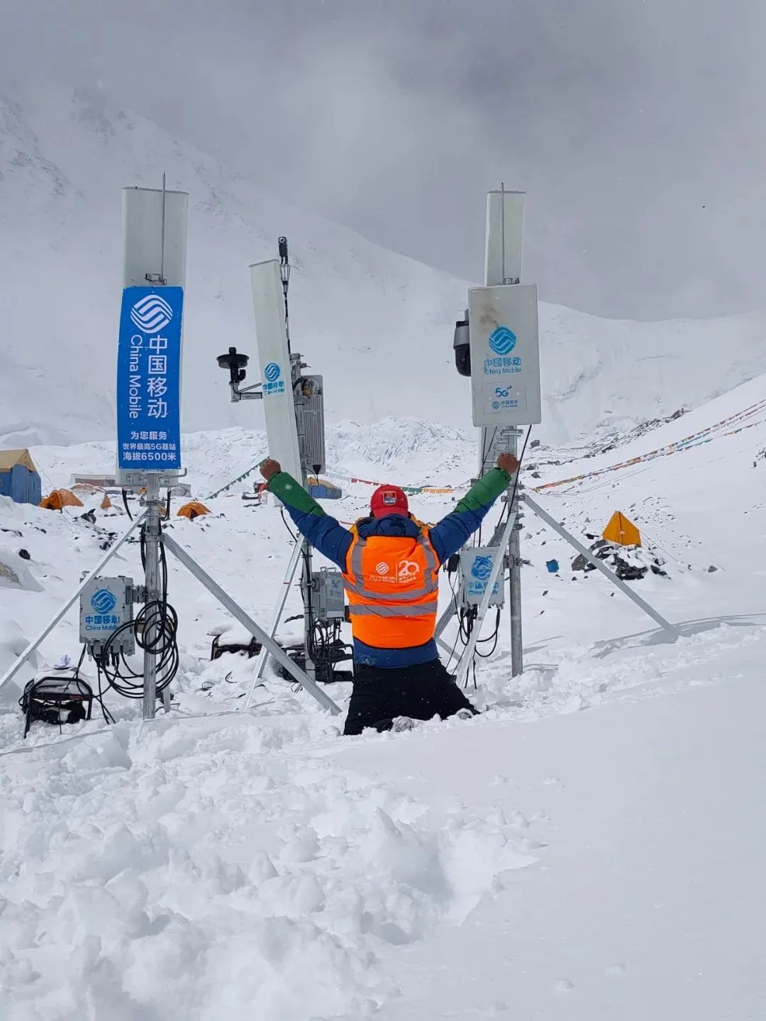 ▲2020年4月,中国移动在西藏珠峰6500米前进营地,开通全球海拔最高的5G基站,确保珠峰峰顶5G信号覆盖。2020珠峰高程测量登山队登顶测量的高清视频画面通过5G网络与全世界实时共享。
