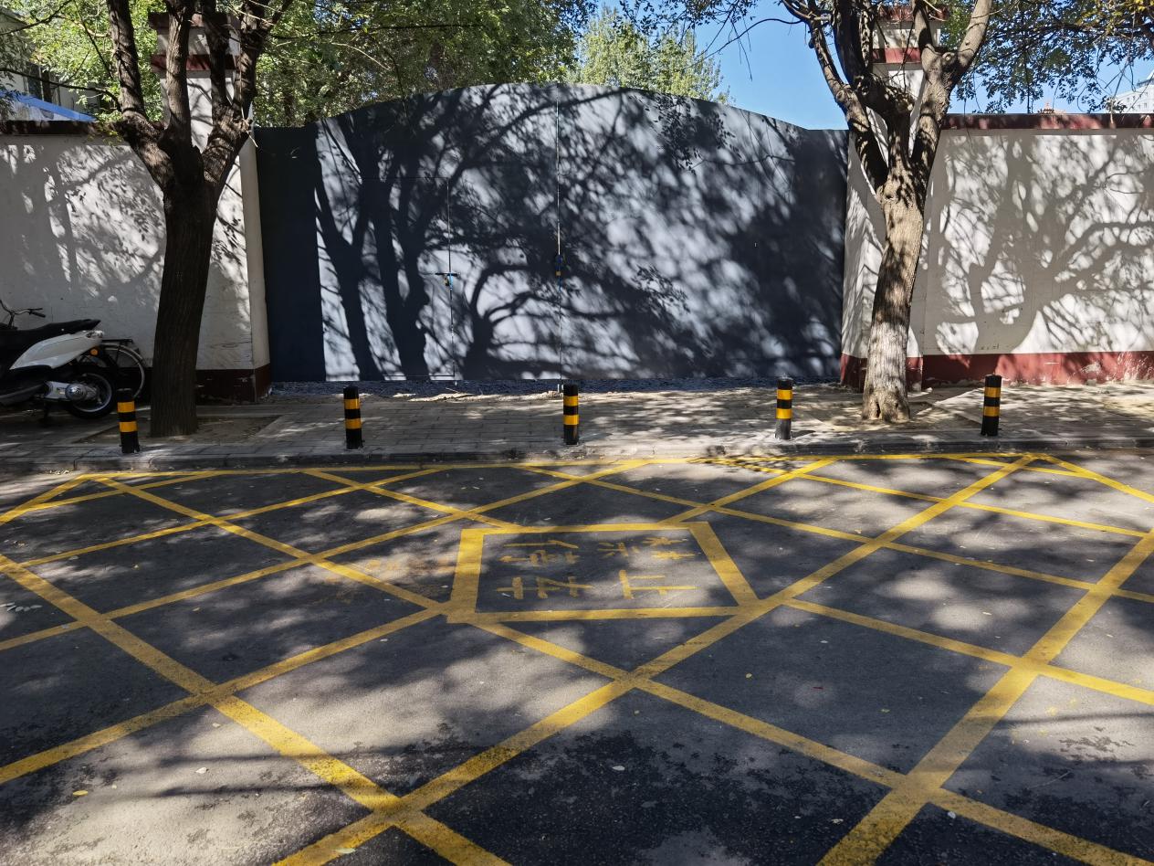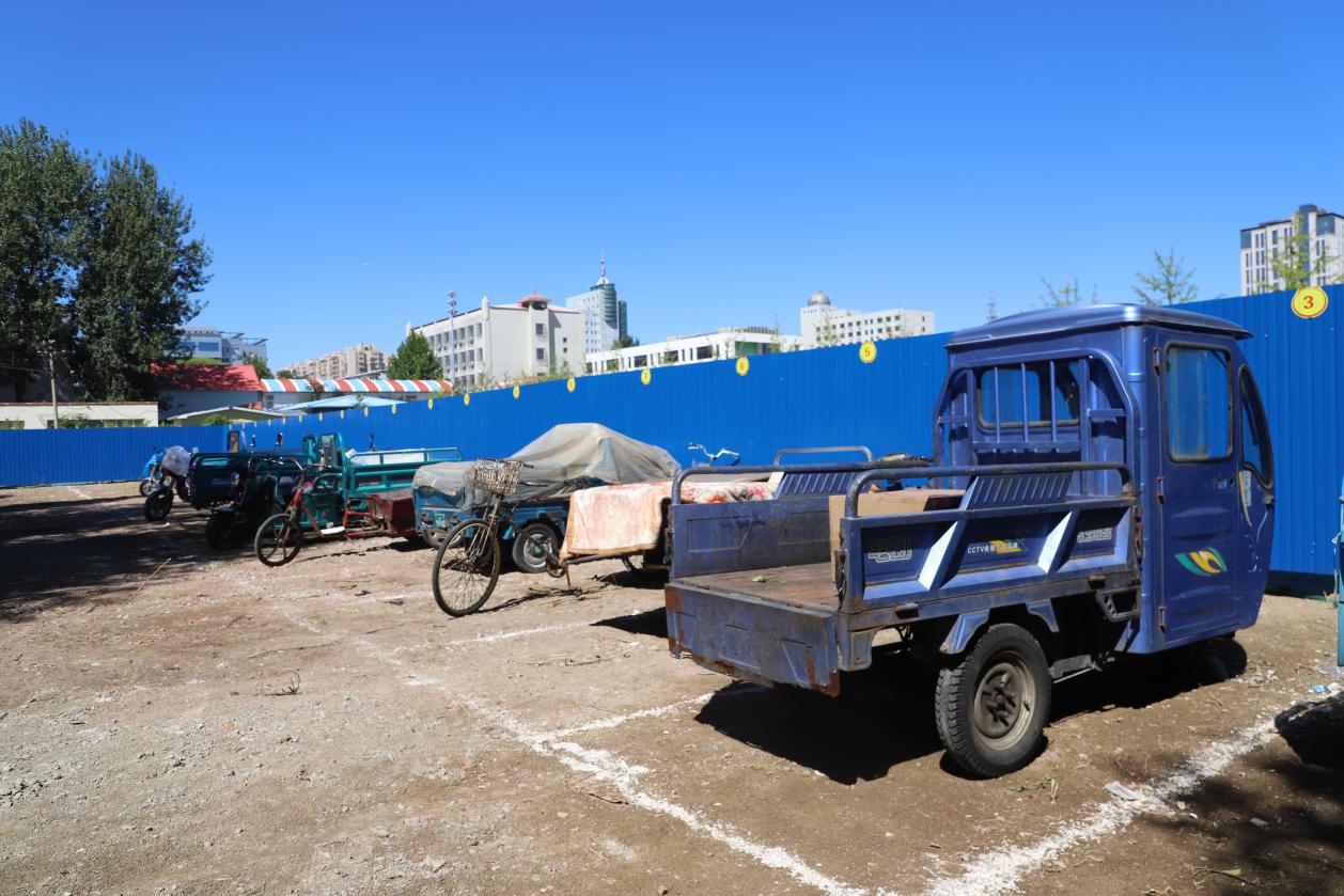 9月3日,施工人员开始进场,开展停车场的建设:铲除杂草、设置围挡、地面硬化、粉刷大门、设置隔离桩、施画车位线等。9月5日,停车场建成并向商户开放。停车场位于建北市场北侧20米处,共50个停车位,设专人进行管理。社区消防通道地面上,还画了“禁止停车”的黄线标识。