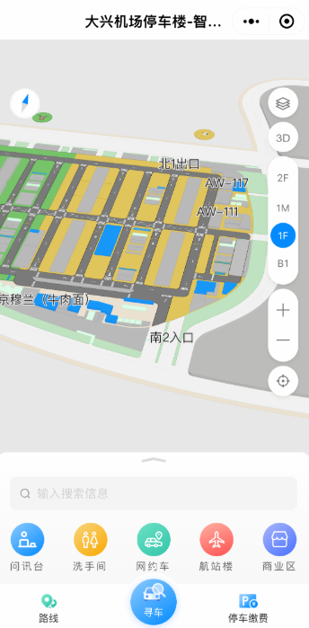 为切实提升大兴机场旅客停车体验,近日,大兴机场停车楼室内导航小程序正式投入使用,旅客通过微信小程序搜索“驿图”,点击后就进入大兴机场停车楼智能导航界面,实现高效、便利停车。