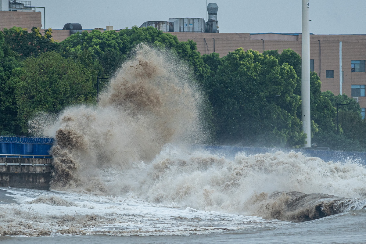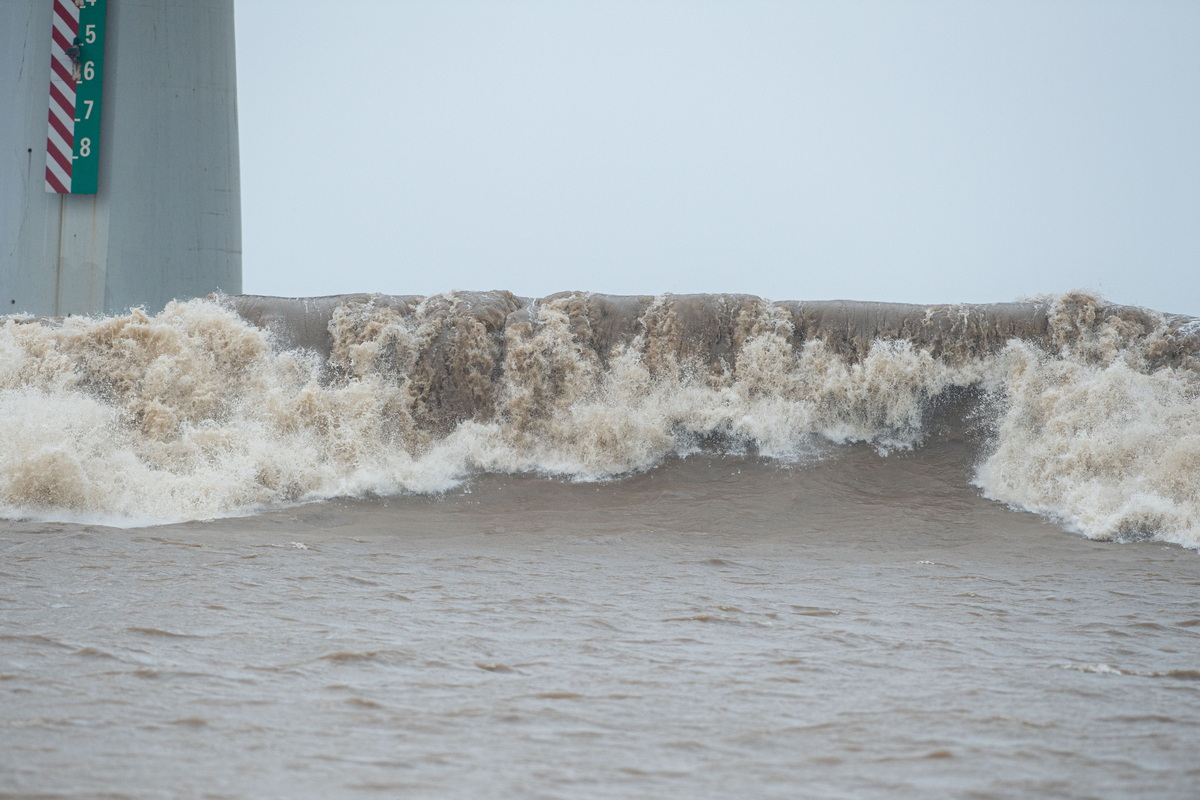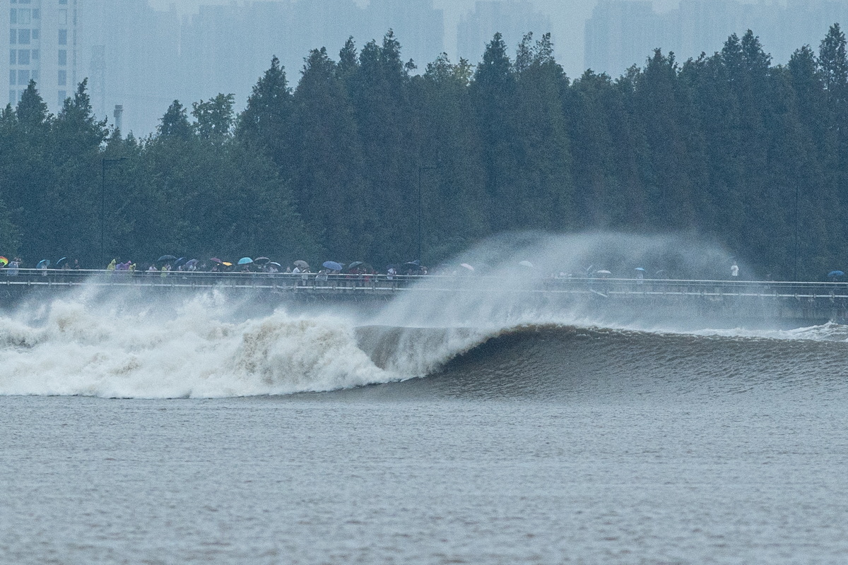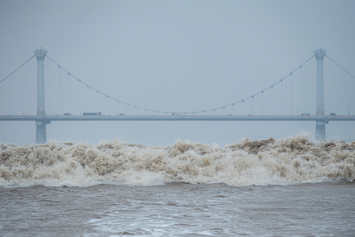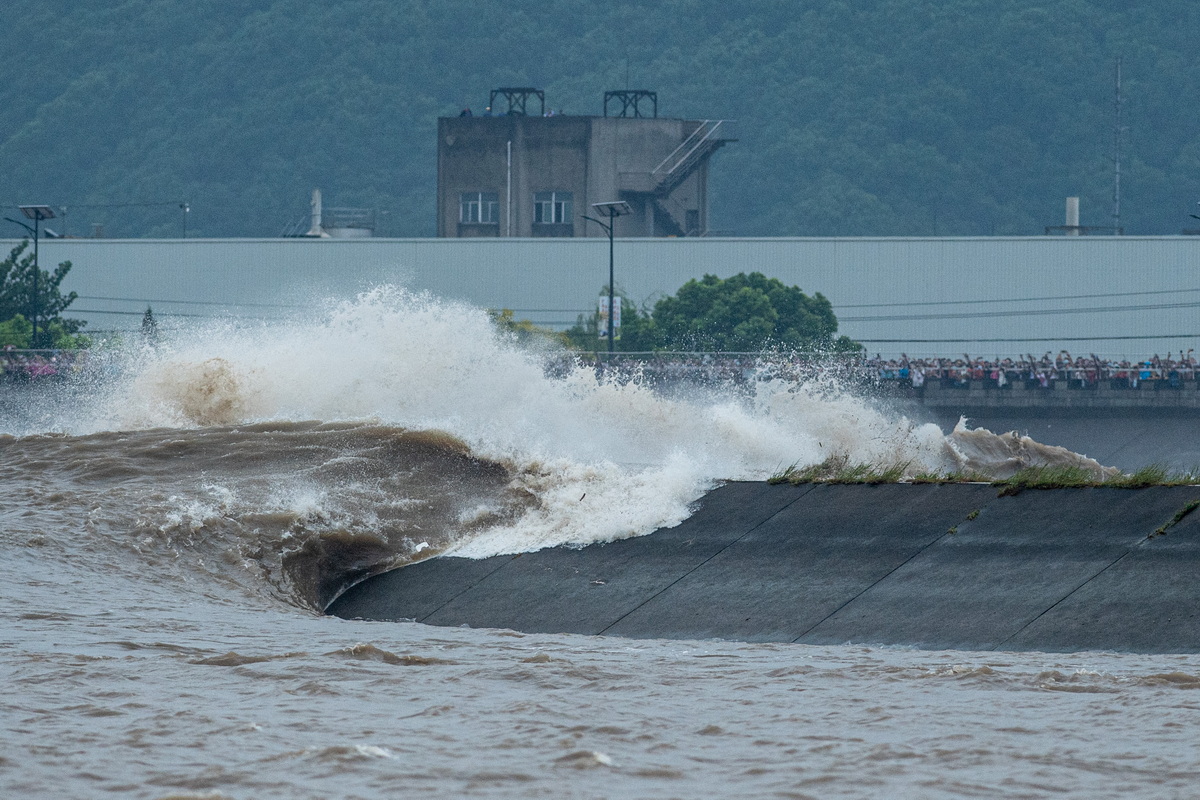 壮观天下无!八月十八钱塘江,风雨之中迎大潮