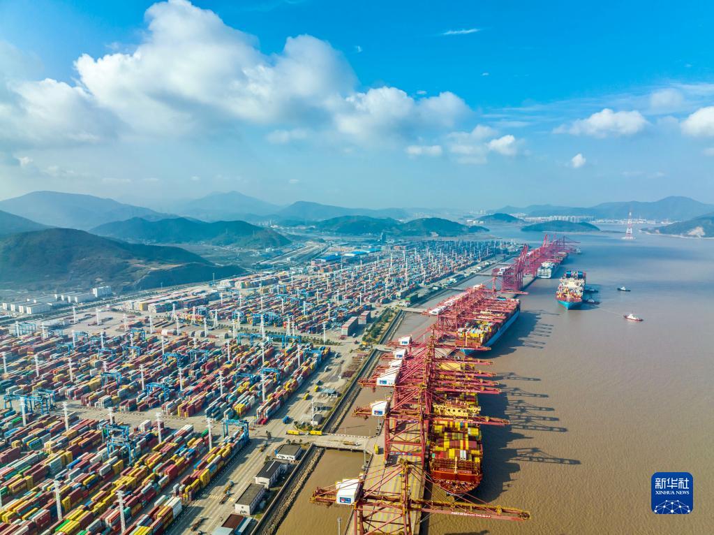 2021年12月24日拍摄的宁波舟山港穿山港区。新华社发(汤健凯 摄)