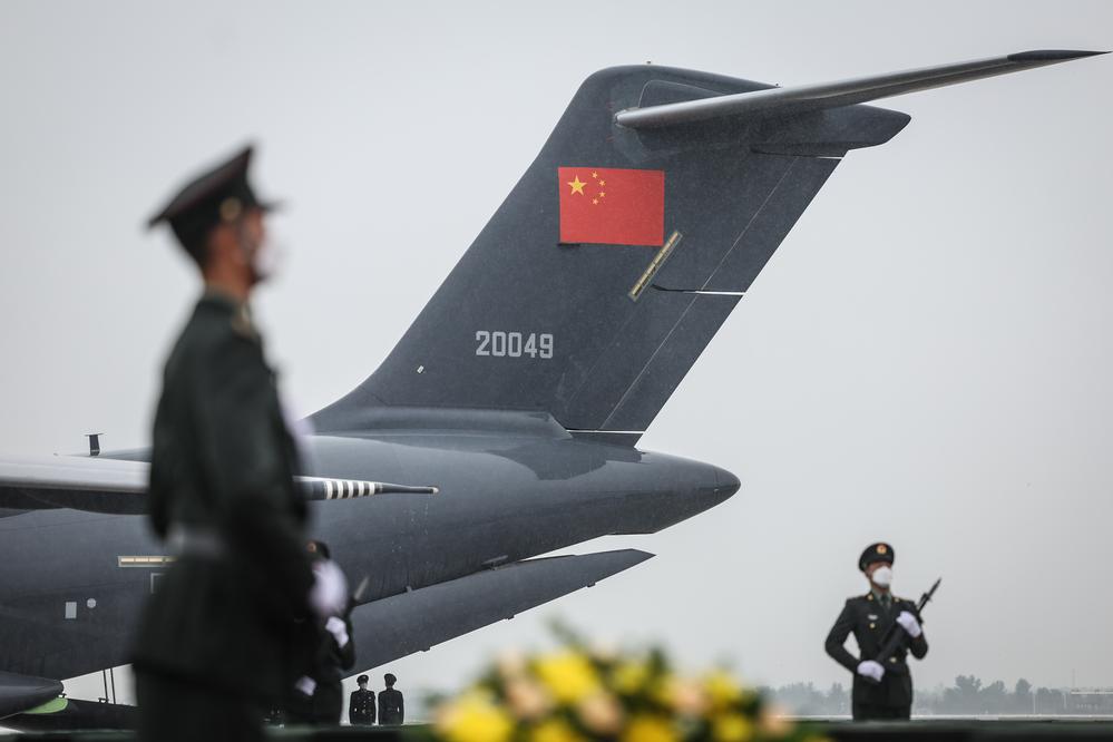 中国空军新闻发言人申进科大校介绍称,执行此次接迎任务的运-20飞机所属空军航空兵某师,是一支有着光荣传统的部队,连续8年担负接迎任务。运-20机长庞荣奇表示:“在韩国起飞后,我的心情久久不能平静。回想起70多年前志愿军先辈冒着敌人的炮火浴血奋战,为我们换来了和平与安宁。作为一名运-20飞行员,我们要练强打仗本领,为强军兴国贡献力量。”