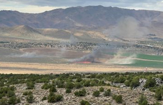 美国内华达州一场飞行比赛中的飞机坠毁并起火。(视频截图)