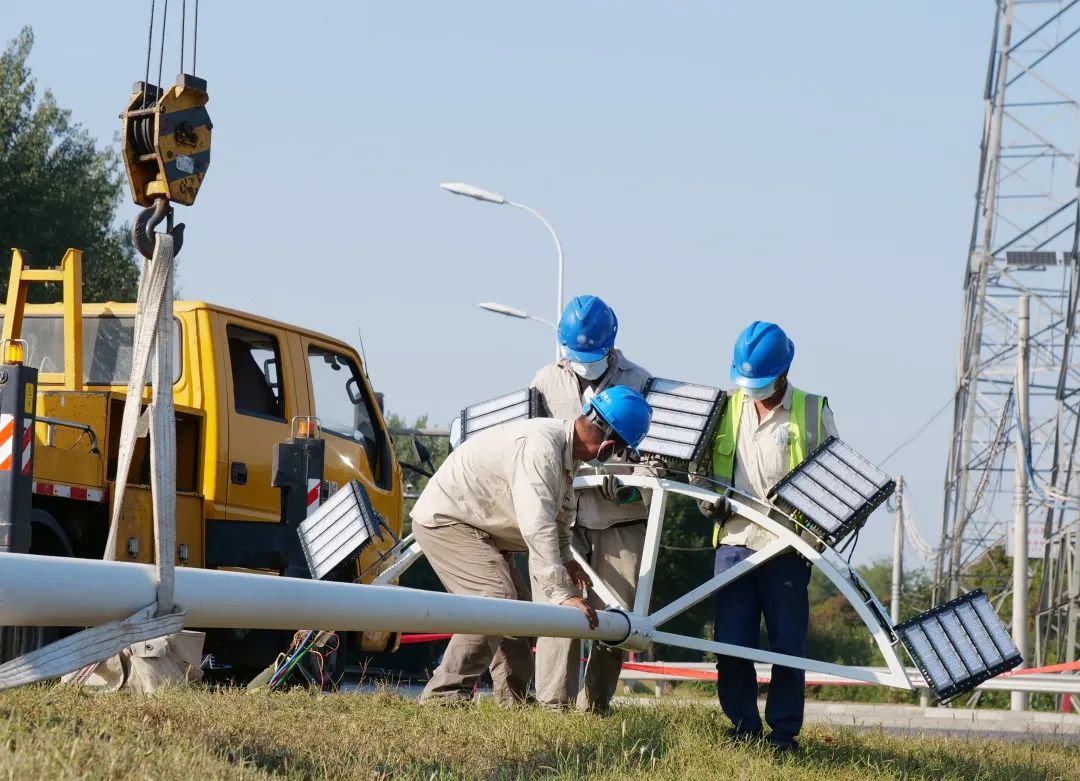 在顺平南线与左堤路交叉口,施工人员正在安装中杆灯灯头,通过机械吊装将灯杆直立在地面,调试后即可点亮。据区城市管理委工作人员介绍,在路灯加装前需充分考虑现有道路情况,结合实际,对每个路口制定施工方案,错峰施工,避免造成交通拥堵。
