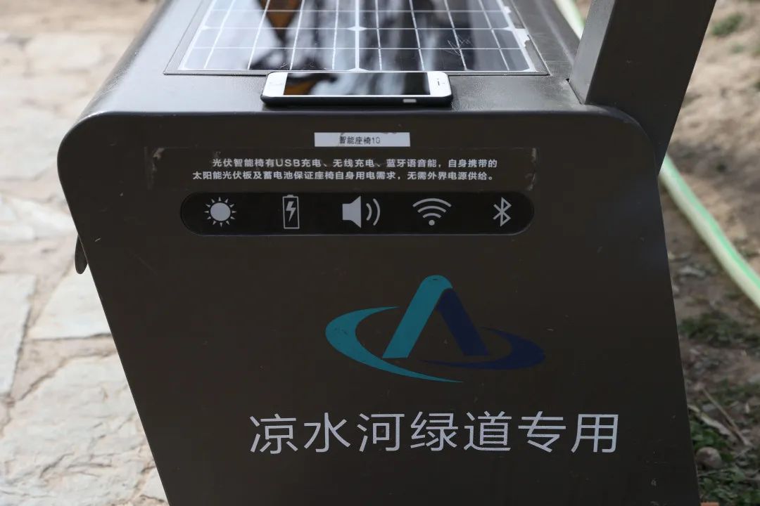 △凉水河公园的太阳能休息亭和智慧座椅。资料图