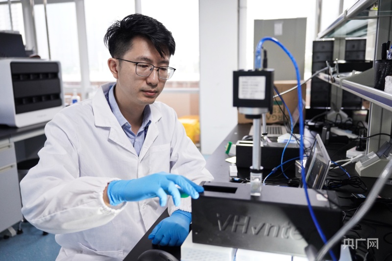 陈天蓝在实验室工作(央广网记者 官文清 摄)