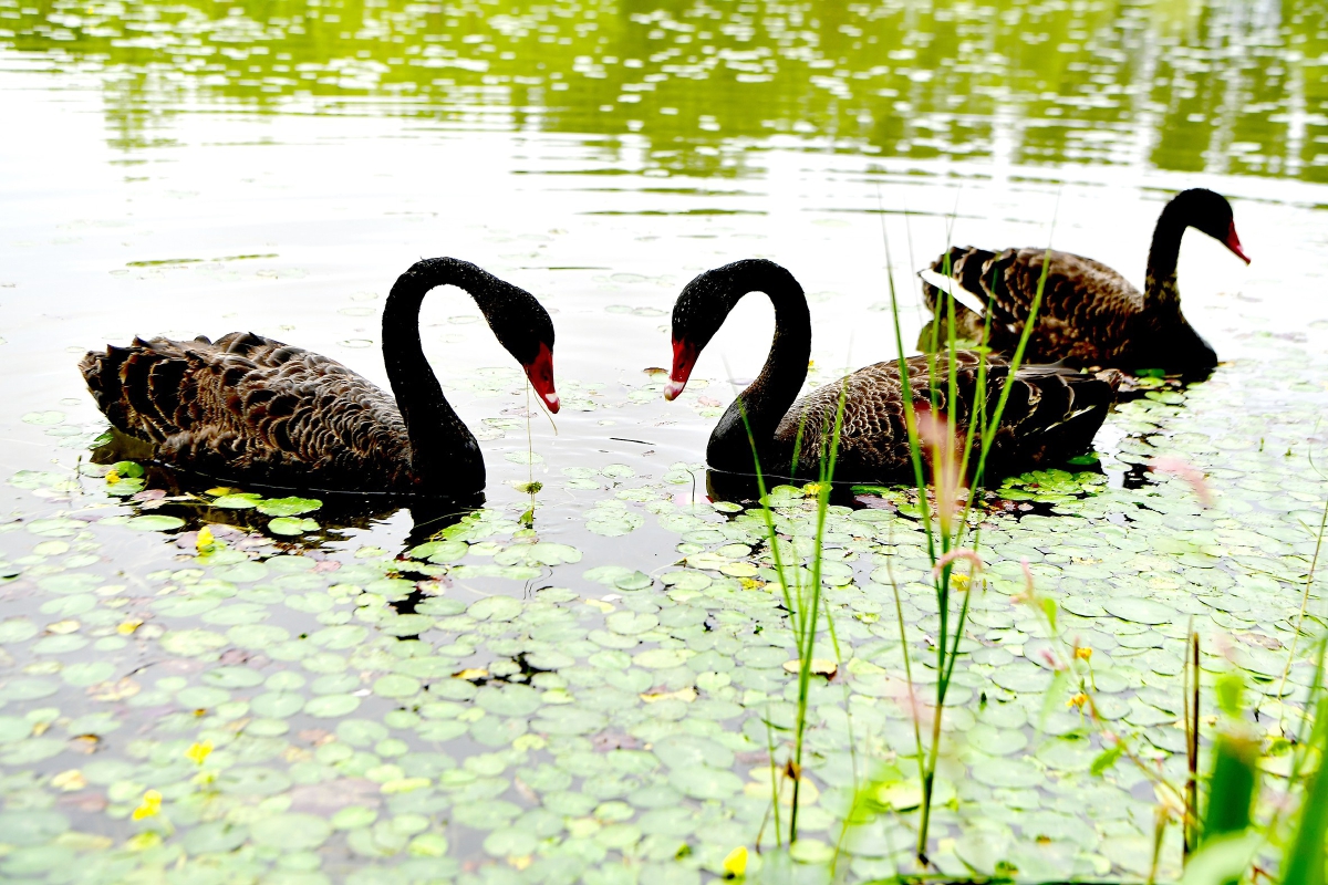 记者看到,这三只天鹅全身黑褐色,时而悠闲地在湖里戏耍,时而大摇大摆地走到岸边“小憩”,与周围的水面、浮萍形成一幅美丽的图画,成为公园一道新的风景。