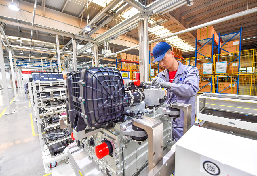 园区北侧的银色厂房,属于中国氢能“第一股”亿华通。这条年产3000台氢能发动机的生产线上,仅有8位工人,负责精密零件的组装。而搬运、抬升等体力活,全都由机器人完成,它们通过激光、视觉等导航定位等技术,可以准确地把零件“送货上门”。工人组装发动机,并不是靠经验,而是通过手中的智能电动拧紧枪,实时监测扭矩和角度,避免返工情况发生。园区内的另一家国内氢能发动机研发制造“头部企业”稳力科技,每个零件都有二维码,工人装配前先“扫码”,实现流程可追溯,发动机组装完成后,还会由专业设备“拍片子”比对规范图,确保所有发动机的组装标准一致。