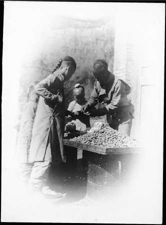 秋分时节京郊栗子下树后,京城卖糖炒栗子的便成一景。特别是东四、西单、鼓楼、前门、花市、东安市场等街市,时而传来卖糖炒栗子小贩儿的吆喝声。《燕都琐记》称:“秋分已至,京城多有卖糖炒栗者,巨锅临街而置,火光相接,满街栗香,路人无不品之为快。”而《燕京杂记》则称:“每日落上灯时,市上炒栗,火光相接,然必营灶门外,致碍车马。”这是清末民初时的情景,巨锅临街而火光相接,乃至妨碍交通,可以想象得出街市的繁盛景象。