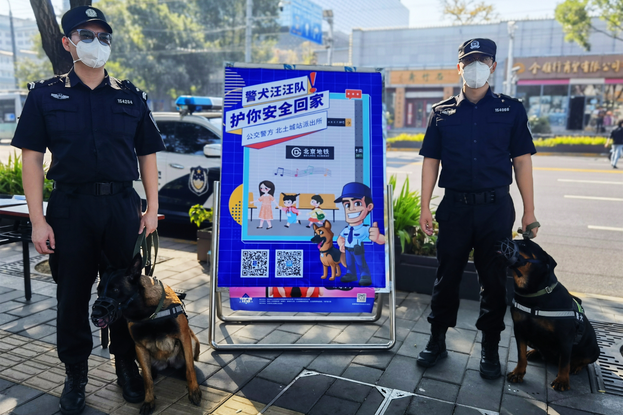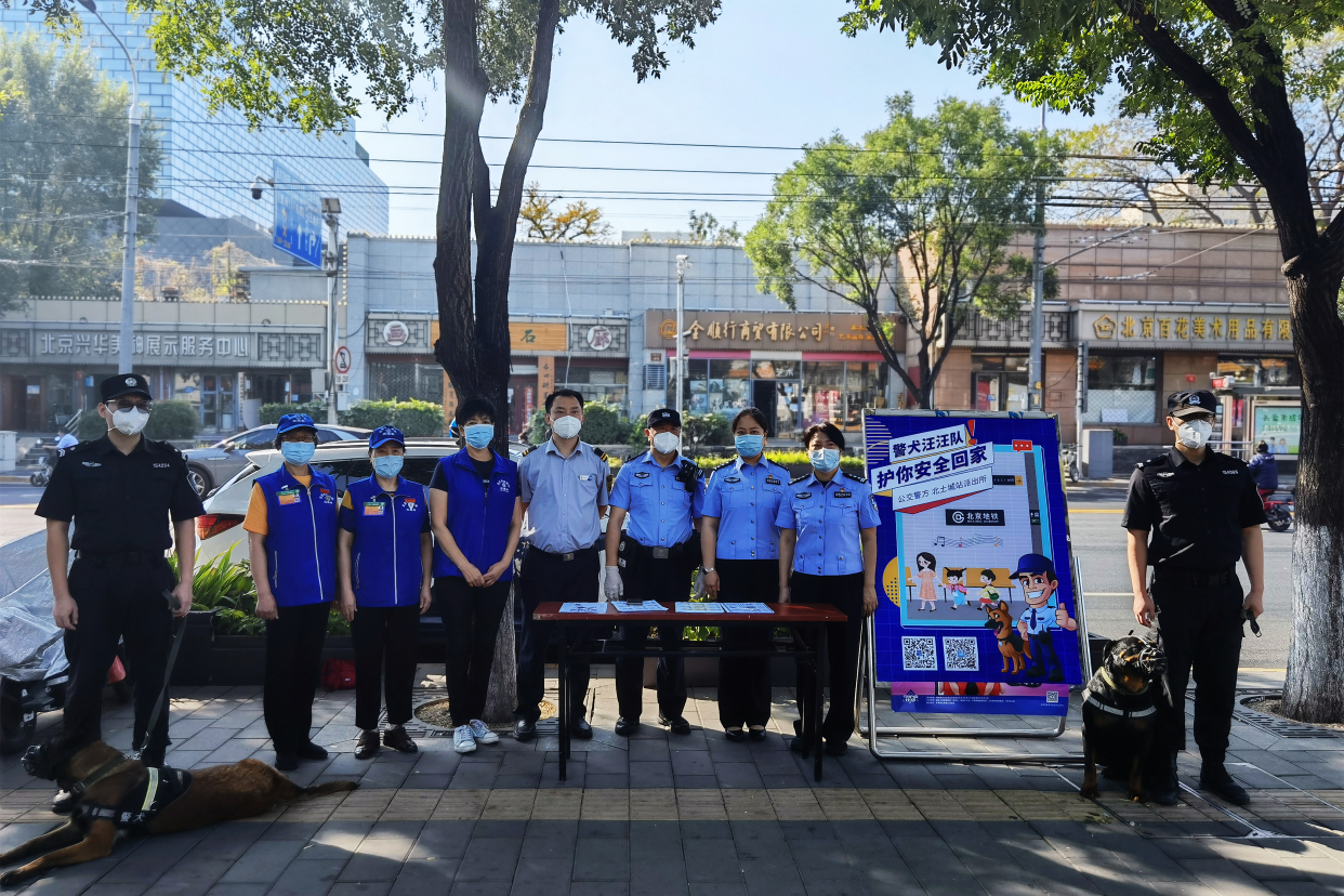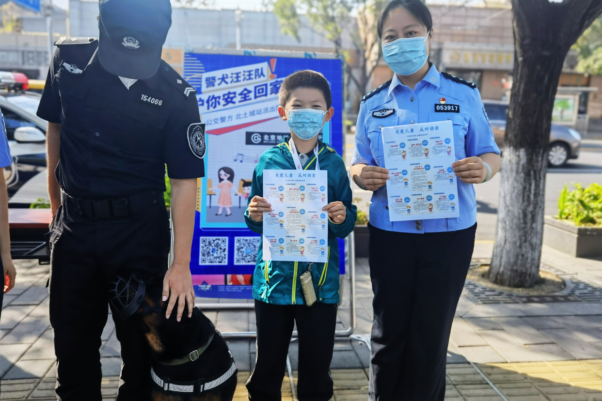 警汪“黑脸儿”和“美美”来了,它们迈着矫健的步伐,英姿飒爽的来了!9月22日上午,由女民警李春红、李静、台悦和女辅警路莹,组成的北京市公安局公交总队法制宣传小分队携带帅气的警汪们来到地铁中国美术馆站,开展预防妇女儿童被拐卖专项宣传活动。