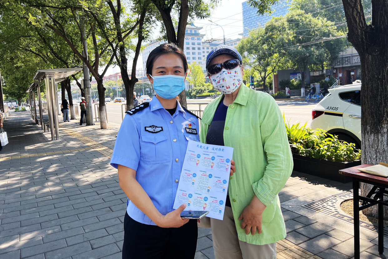 几位女民警向市民发放宣传材料,通过现场宣讲、面对面解疑答惑、广播播报等多种形式,宣传《国家安全法》《未成年人保护法》《民法典》等中关于保护妇女儿童权益的法律法规,围绕常见的几种拐卖妇女儿童的手段,多角度为群众讲解如何防范、识别拐卖行为,在被拐卖后又应如何实施自救。