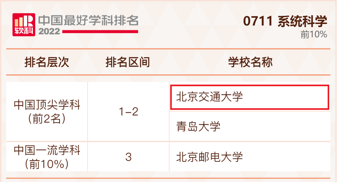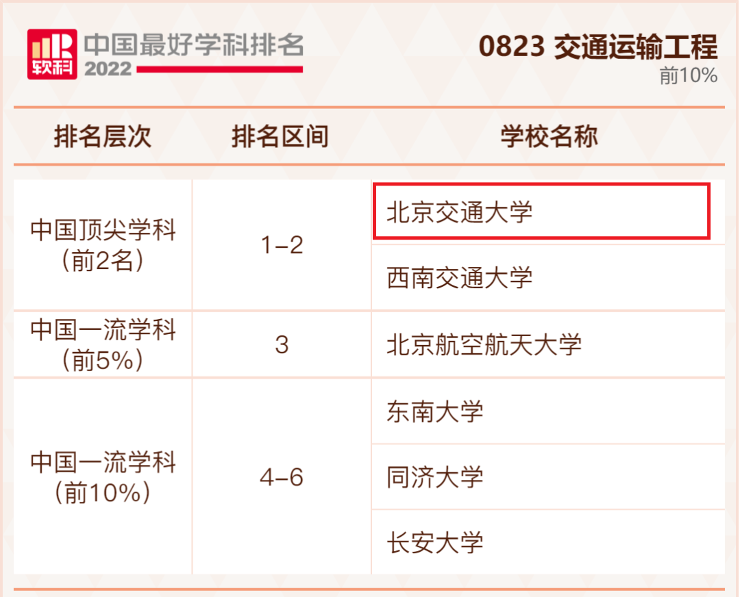 喜报,2022软科中国最好学科排名发布,北京交通大学26个学科上榜。交通运输工程、系统科学再度蝉联榜首,顶尖学科数量位列全国第27名。