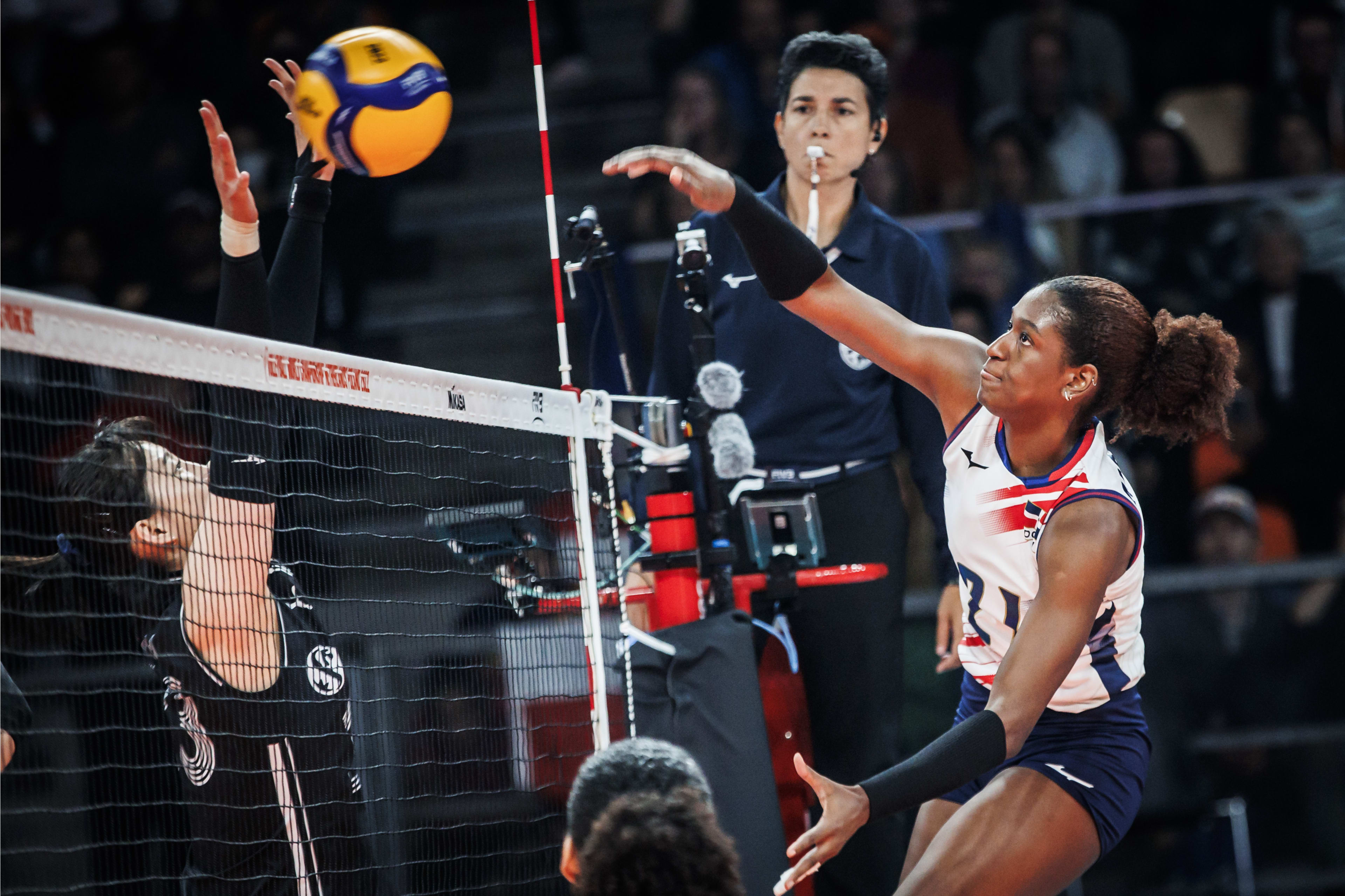多米尼加队也是“加勒比旋风”,全队身体素质出众,对决韩国队,多米尼加队网口优势明显,从而以25比19、25比12和25比15直落三局轻松过关。