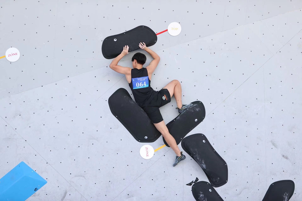 攀岩运动由登山运动衍生而来,素有“岩壁芭蕾”、“峭壁上的艺术体操”等美称,它不但要求选手对于线路拥有较强的洞察力,能够在短时间内做出线路优化,同时对选手自身的身体条件、技术、经验必须有客观和清晰的认知。赛场上,只见运动员手脚并用,在岩壁上翻转腾挪,穿梭于岩壁之上,在攀爬中寻找向上的力量,不断突破自我,展现出不一样的力量之美。