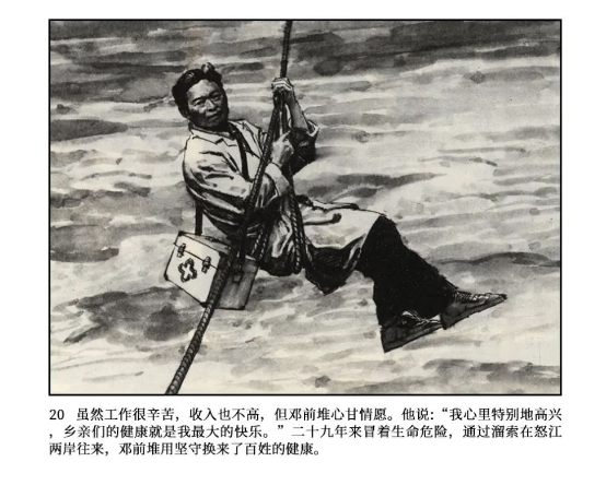 2019年9月25日,“最美奋斗者”表彰大会在京举行,特别推荐连环画《峡谷中的“溜索医生”邓前堆》。