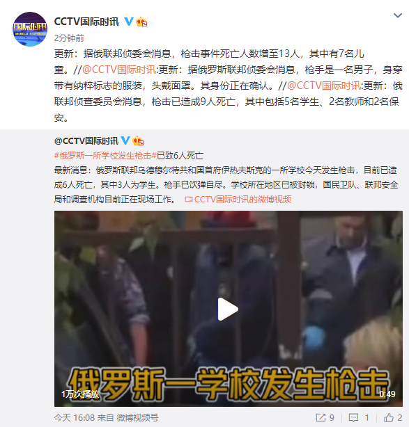 来源:央视新闻客户端、@CCTV国际时讯、环球网