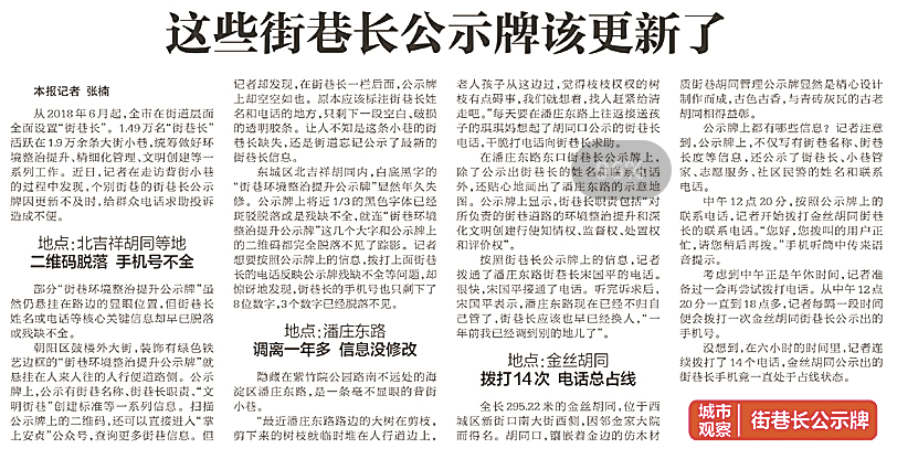 2006年7月4日,随着北京对城市管理日益重视,一个名为“城市观察”的栏目,首次出现在了《北京日报》的版面上。“从开始亮相,这个栏目就独辟蹊径。”时任北京日报社会新闻中心主任的陈先回忆,栏目创办伊始,就将目光投向了那些“发生在人们的日常生活中,却少人关注”的问题。