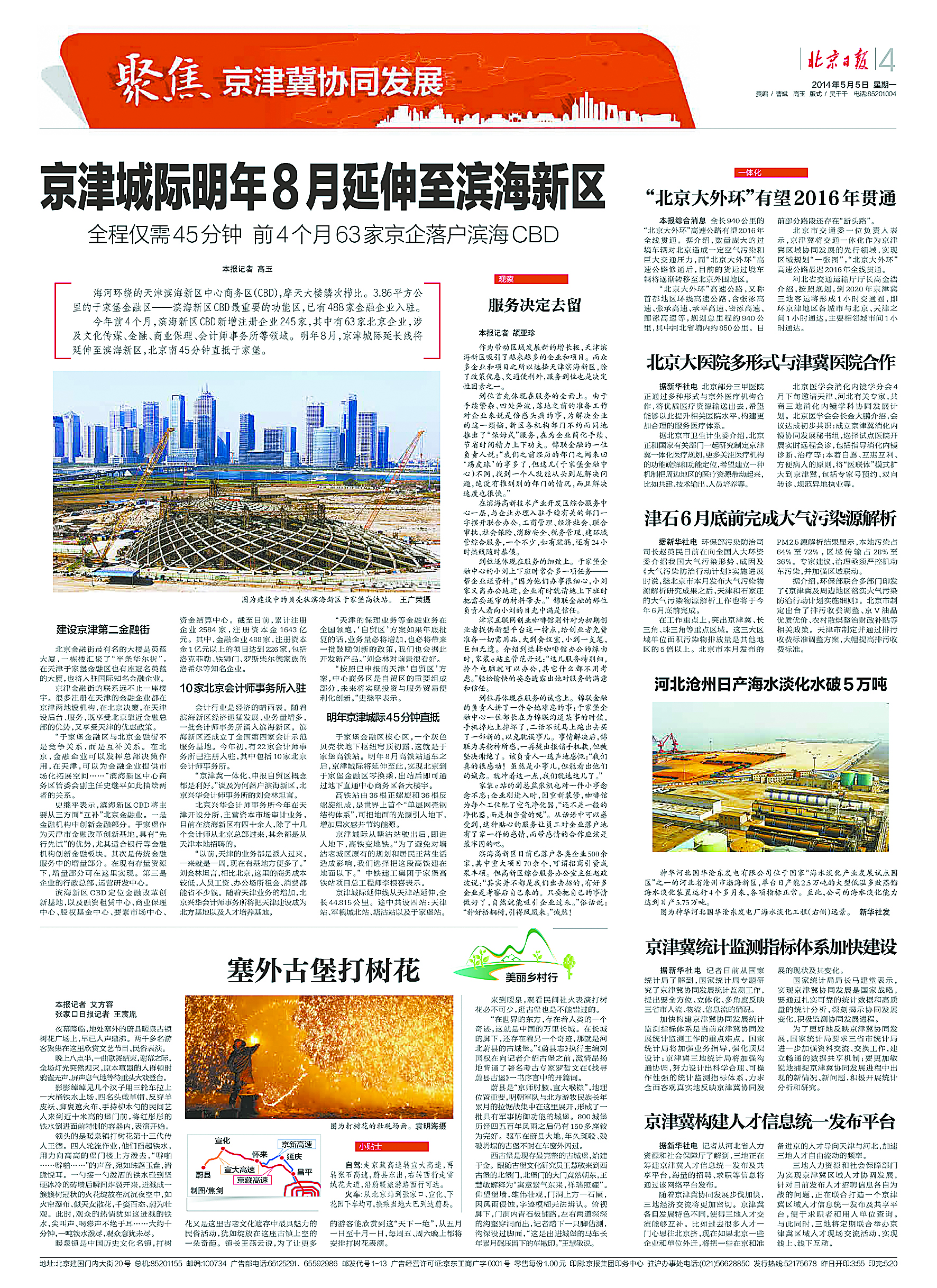 2014年5月,“首都经济圈”周刊更名为“聚焦京津冀协同发展”。在这个更大的舞台上,《北京日报》不但是聚焦三地协同发展的先行者,而且是引领者。