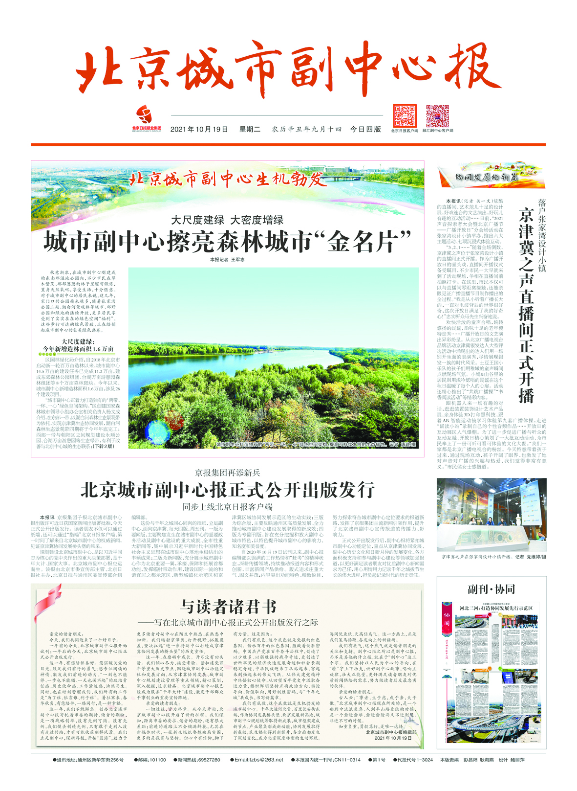 2021年10月19日,《北京城市副中心报》正式公开出版发行。