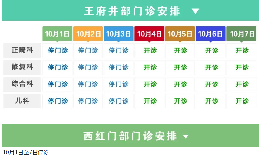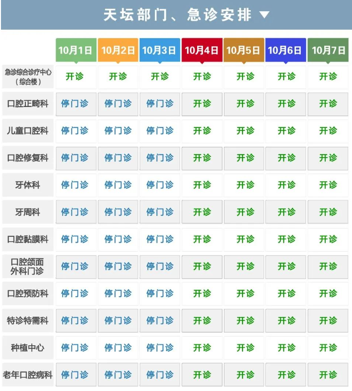 ▲口腔科:10月3日—10月7日出诊。