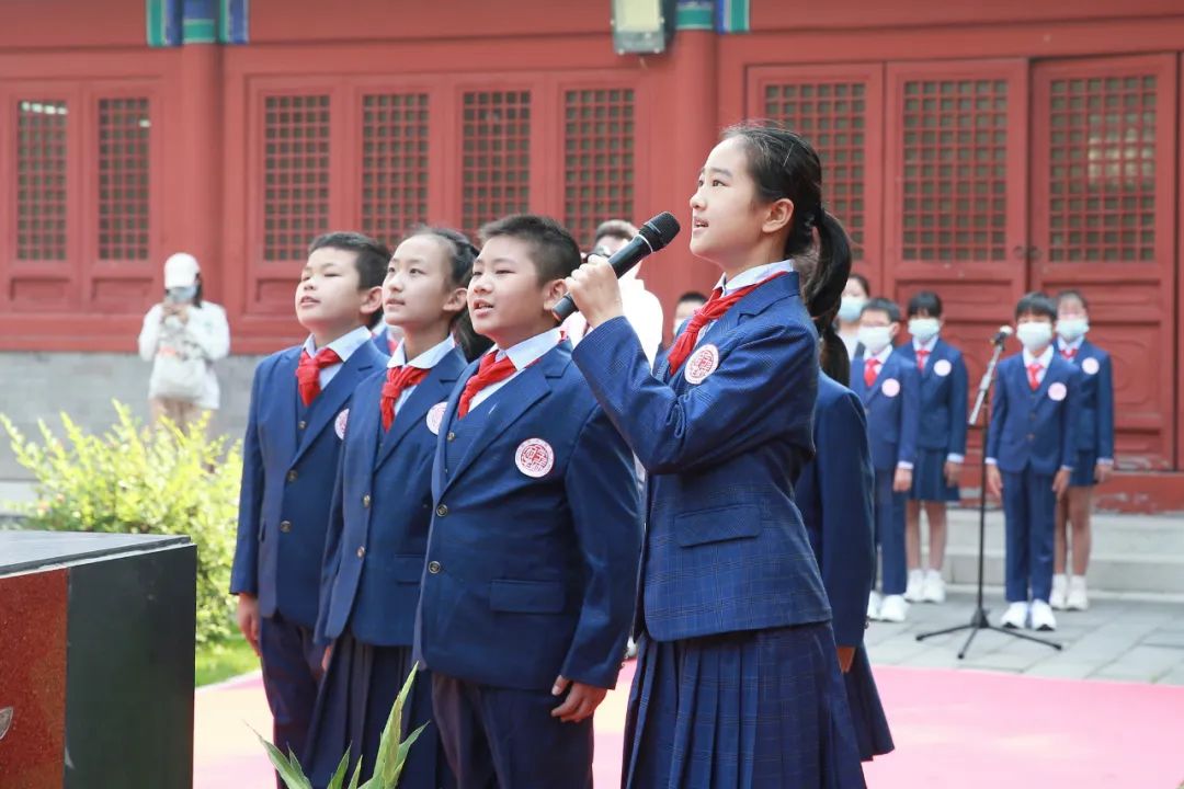 礼敬环节庄严肃穆,少先队员代表为先师敬献花篮,东城区府学胡同小学校长滕亚杰诵读祝文,带领现场所有参礼者行鞠躬礼,一起为圣贤先哲静默铭志。