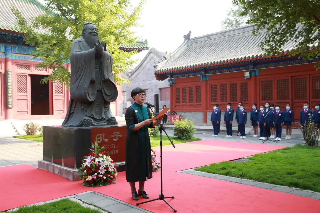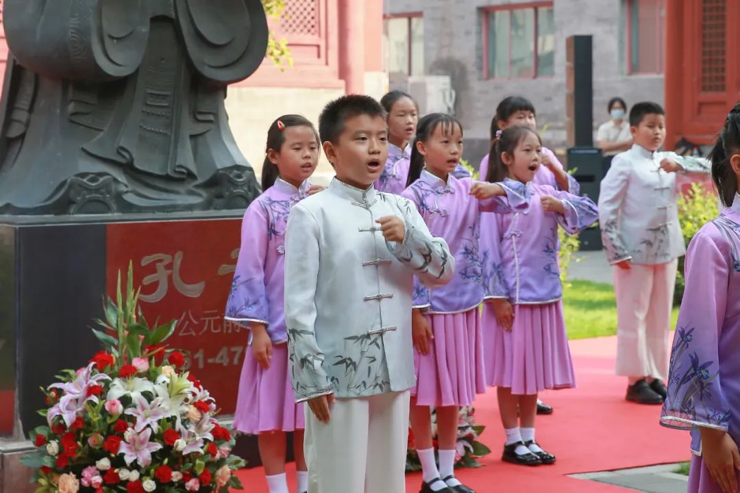 东城区府学胡同小学与孔子结缘已有650余年,校内庙、堂、阁、祠四位一体,是传统与现代相结合的园林式学校。9月28日,东城区府学胡同小学举行孔子诞辰日纪念活动暨“府学讲坛”开坛仪式。本次活动旨在充分发掘府学独特的“活”的儒学教育博物馆资源,引导全体府学人读圣贤书,立君子品,在传承、弘扬中华优秀传统文化中提升府学传统文化的向心力,增强府学师生的文化自信。