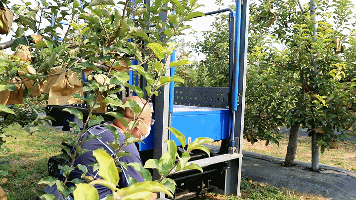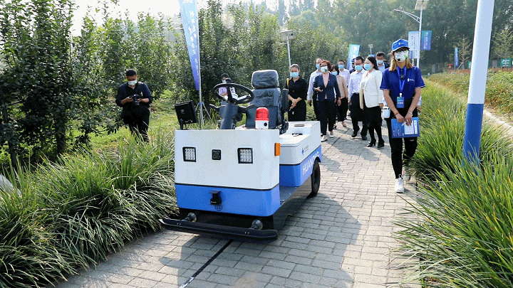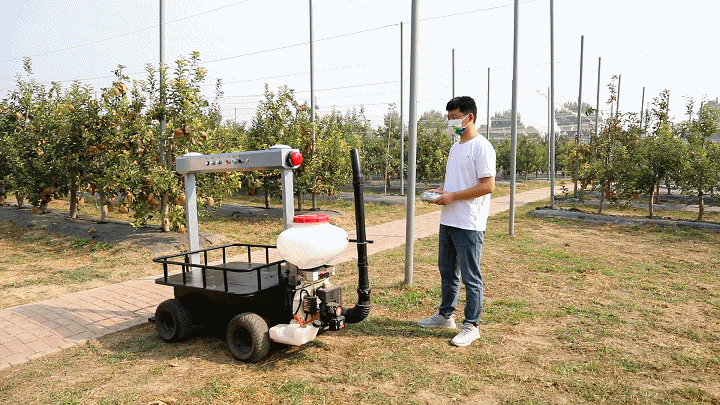 活动现场演示了众多现代农业智能装备,无人割草机器人、无人运输车、无人施药装备、无人果园升降平台、无人植保机等。