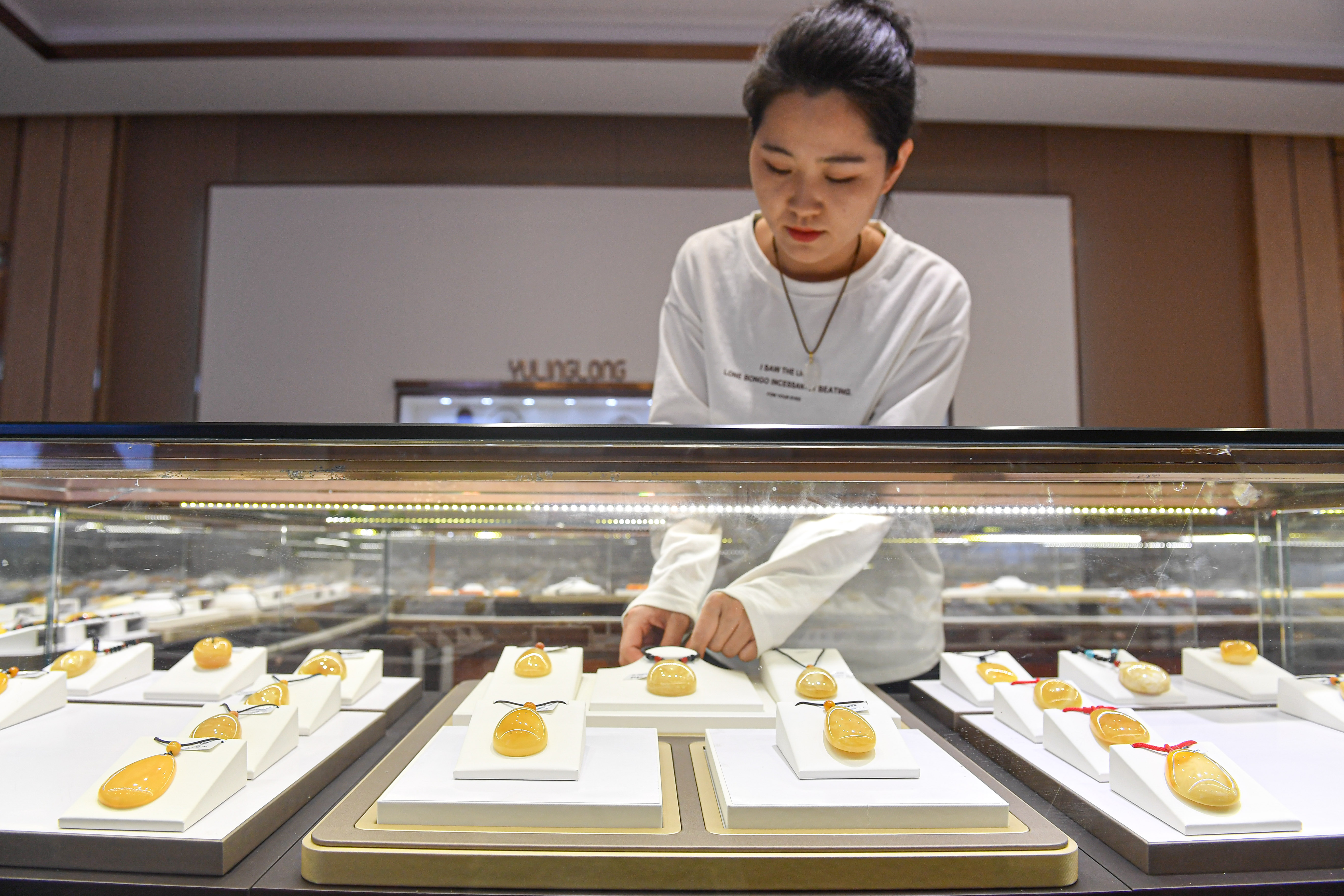 在海南洋浦保税港区拍摄的海南玉玲珑珠宝科技有限公司展厅(2021年12月3日摄)。新华社记者 蒲晓旭 摄
