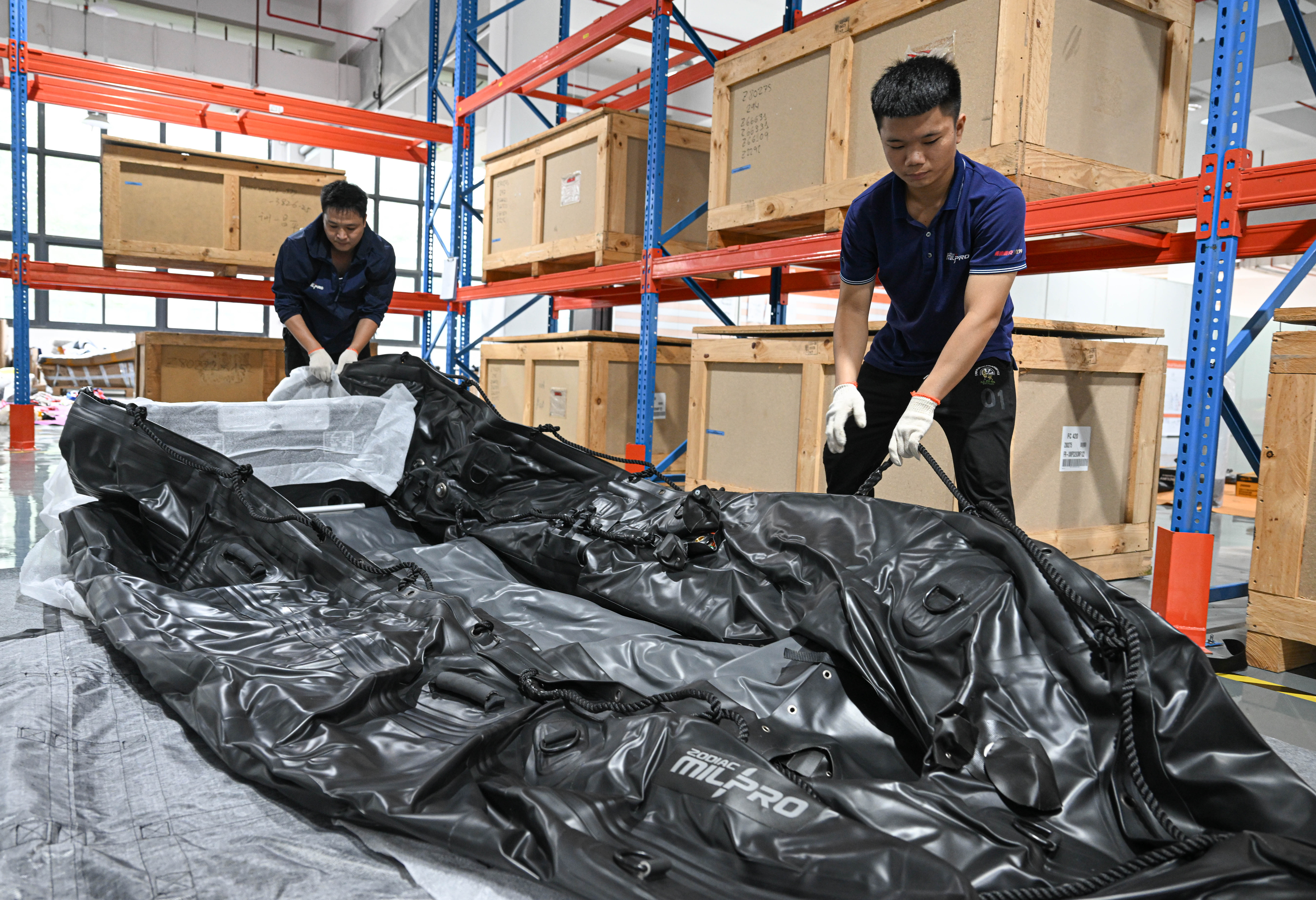 工作人员在位于海南洋浦保税港区的佐迪亚克仪龙(海南)实业有限公司查验船艇零配件(9月28日摄)。新华社记者 蒲晓旭 摄
