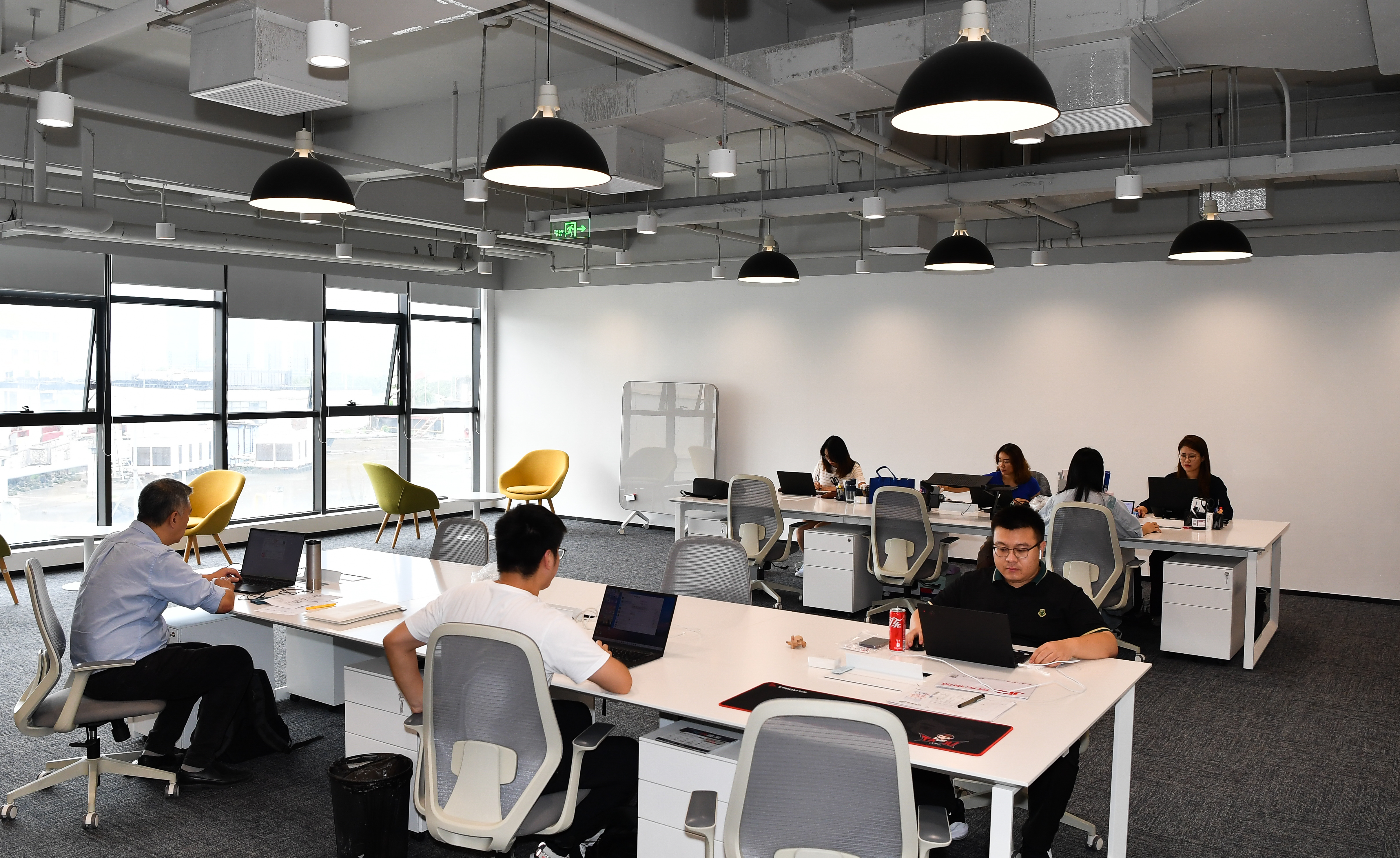 海南省海口市海口复兴城互联网信息产业园内一区,亲和(海南)智能科技有限责任公司员工在办公(9月29日摄)。新华社记者 杨冠宇 摄