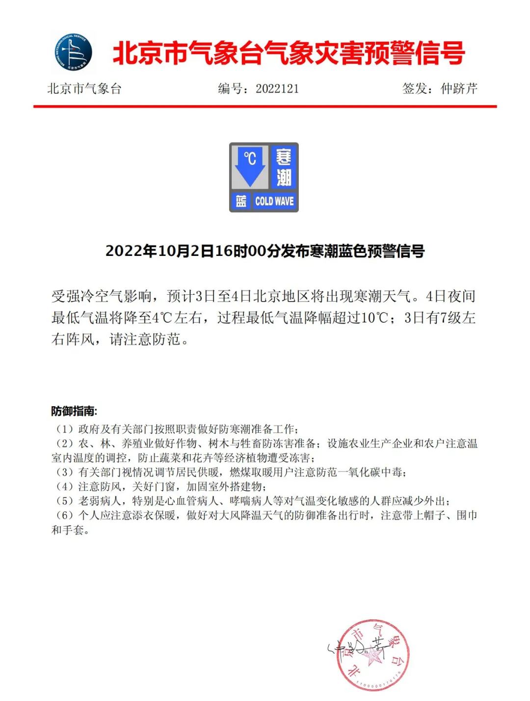 伴随着最强冷空气来袭,3日开始气温出现断崖式下降,预计今天(4日)夜间最低气温在4℃上下,山区最低气温降至冰点,下半年首个寒潮蓝色预警诞生!