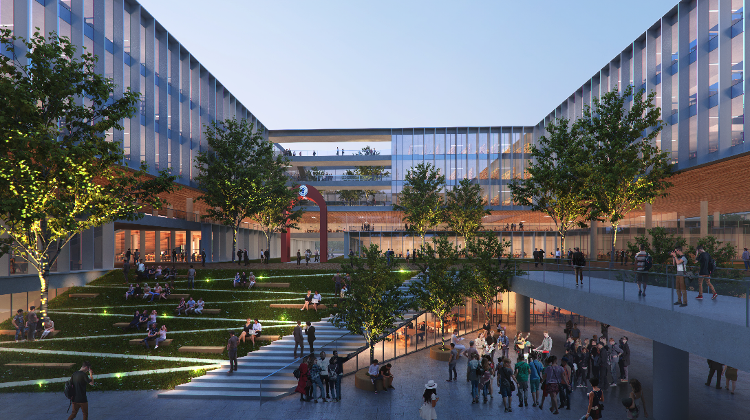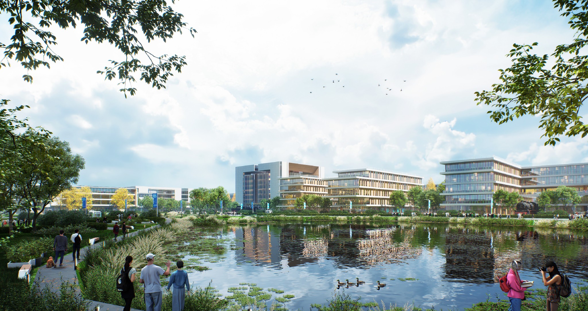 打造以学科贯通为核心的研究型校园,是北交大雄安校区规划设计的重点。规划方案设计了一条校园“学术中轴”,公共教学、实验、研究等功能一应俱全,可承载三大一流学科群和两大基础学科建设。该校雄安校区还以交大校训和饮水思源的传统为名,规划了三大广场:思源、知行、天佑,打造了新明湖水系和24小时开放书院全时交流共享空间。