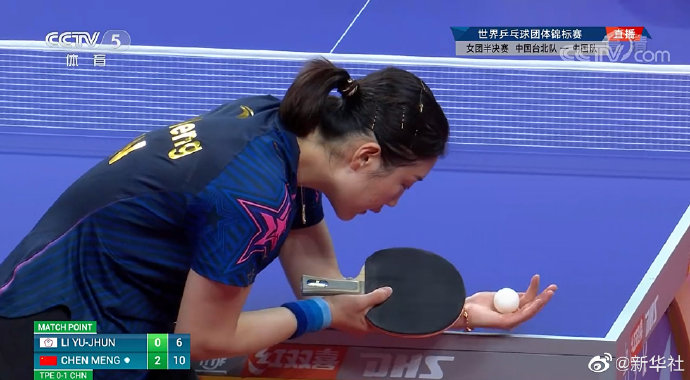 7日,在成都进行的2022年第56届世界乒乓球团体锦标赛(决赛)女团半决赛中,中国队派出孙颖莎、陈梦、王曼昱迎战中国台北队,最终3:0完胜对手,率先闯进本次世乒赛决赛。