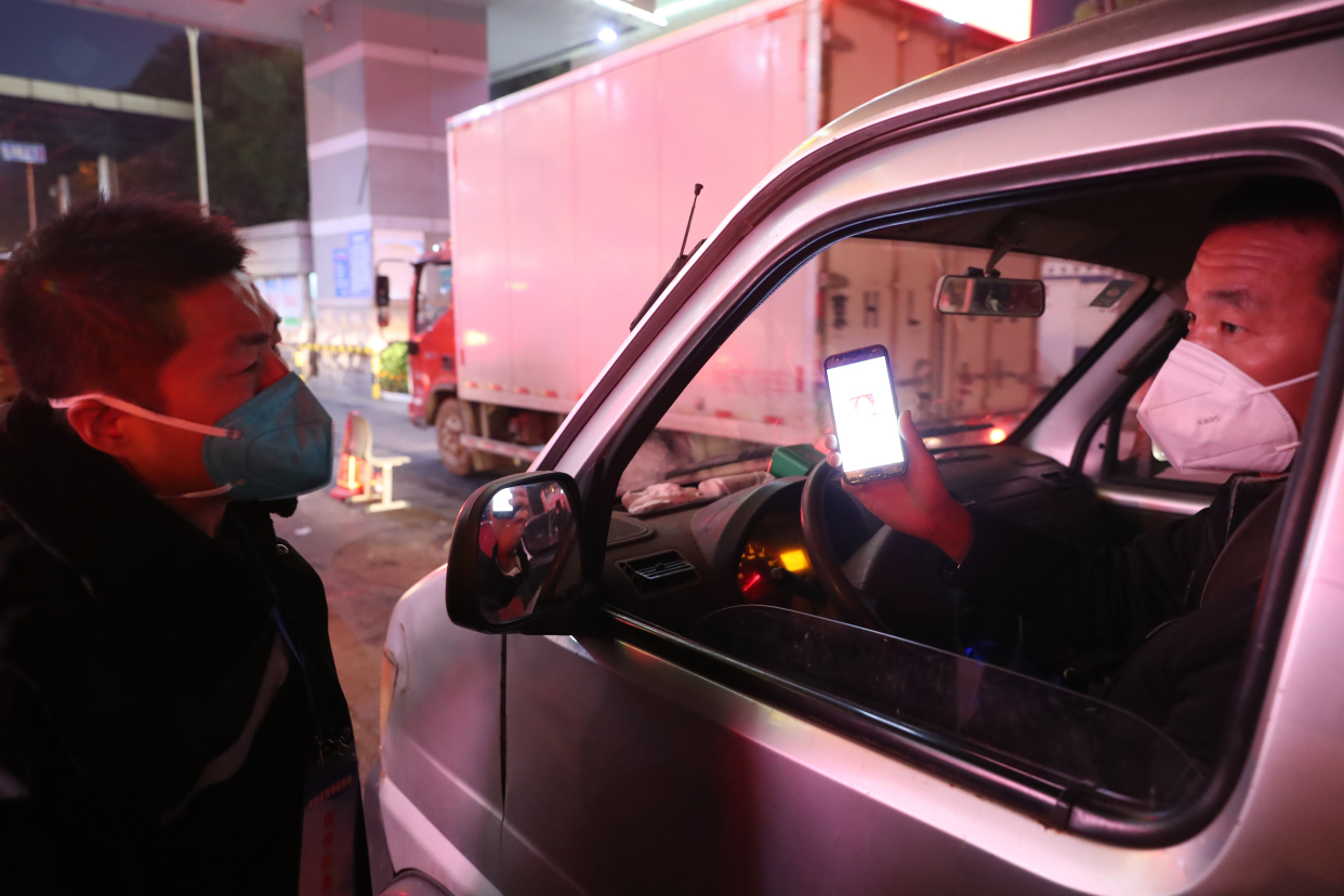 10月8日零时,记者来到新发地惠农门,几辆装满蔬菜的货车正在办理进场手续,扫码、测温、车厢检查等步骤一个不少。记者随机采访了一位货车司机,邢师傅告诉记者:“来新发地还是比较方便的,多了些检查手续,但是总体还是很便捷就过去了,这不也都是为了大家好嘛,理解理解。”