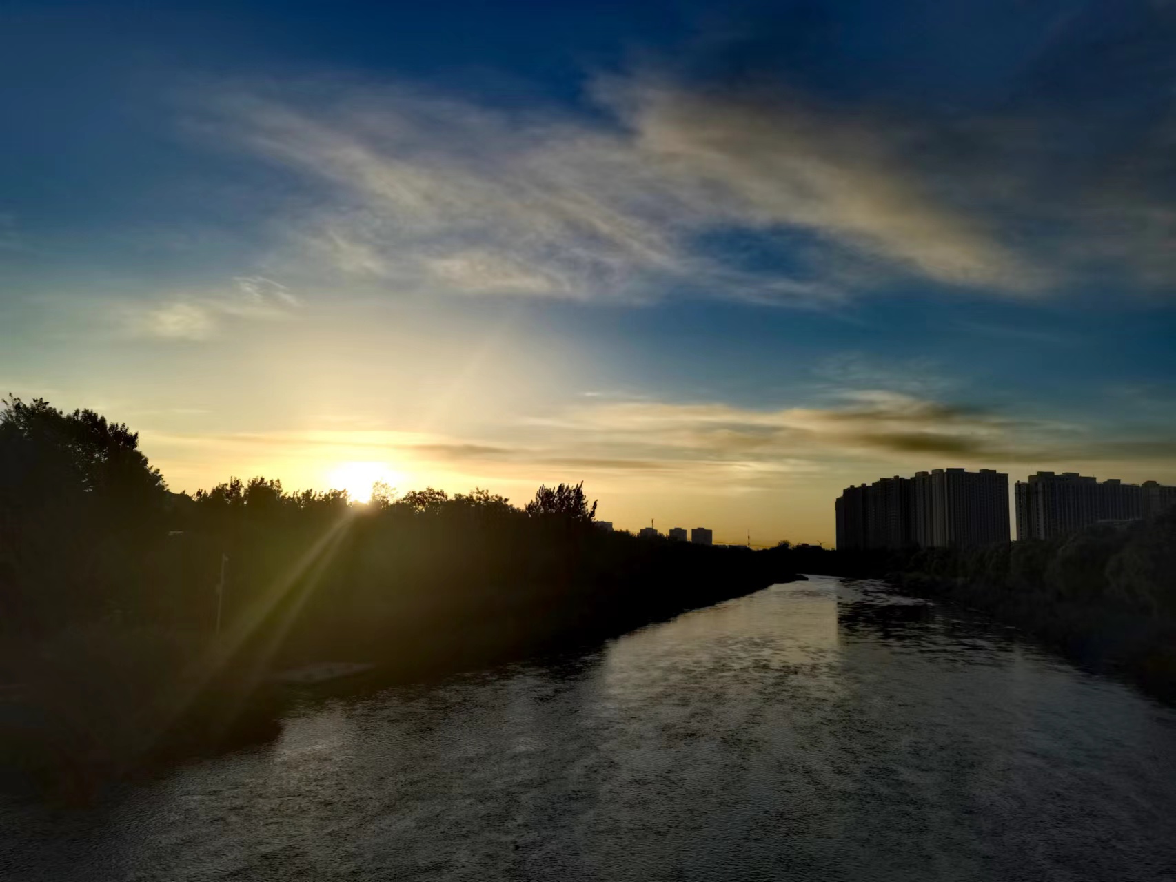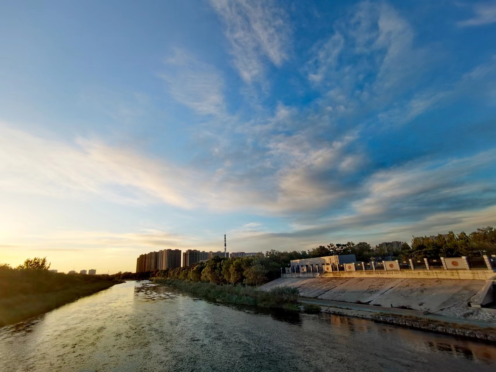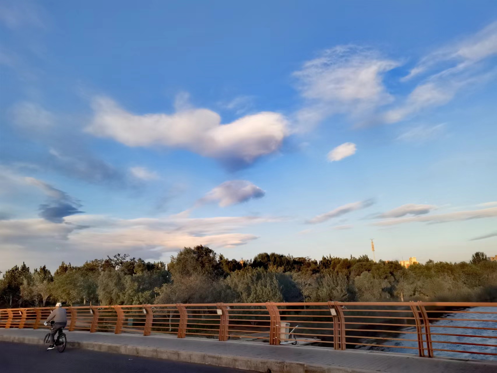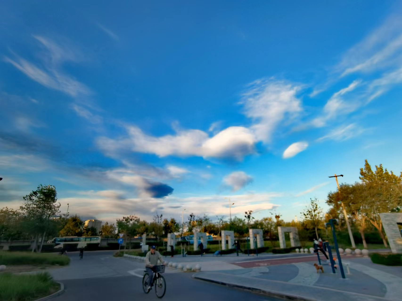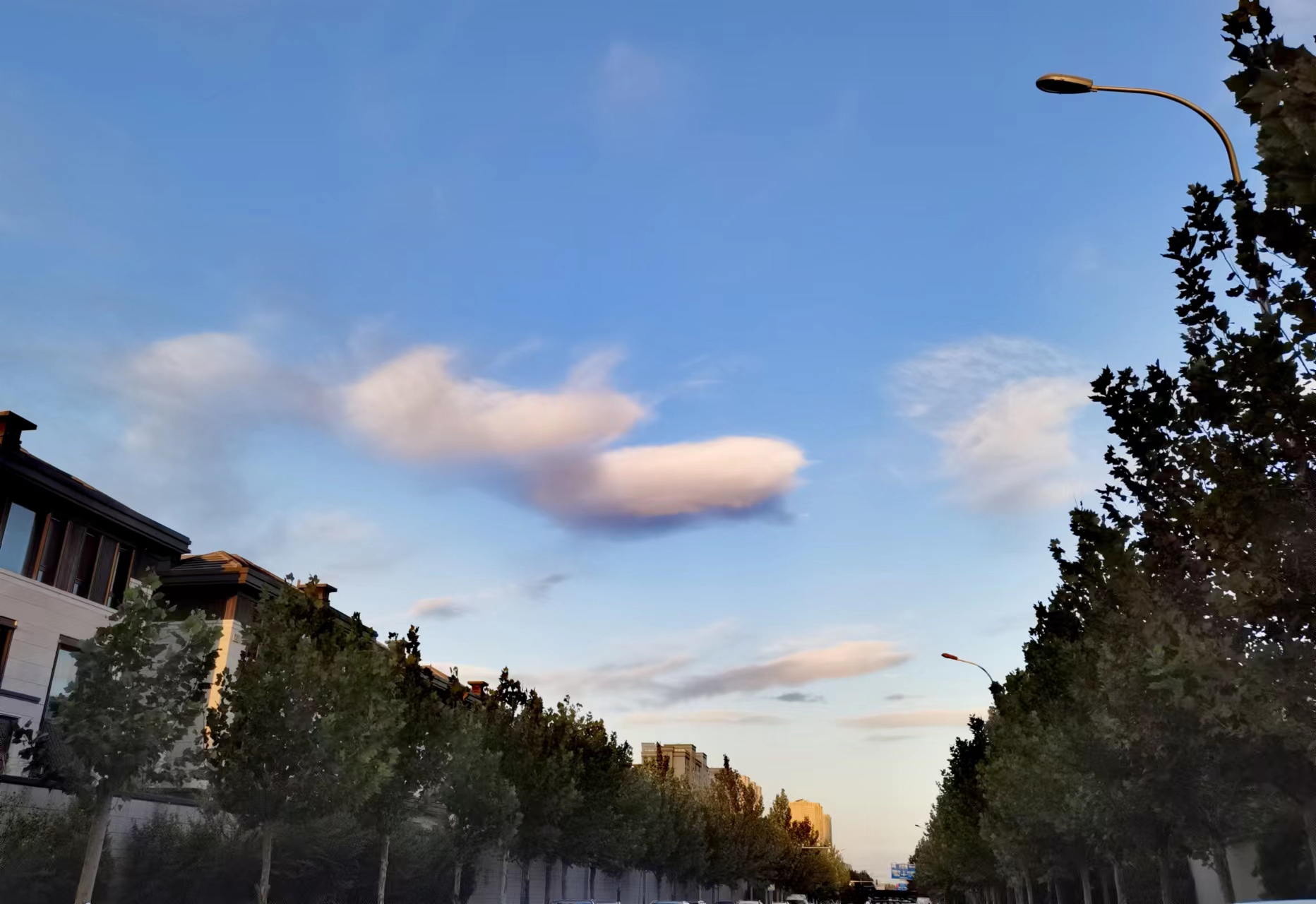 今天早上6点30分,秋高气爽,朝阳初生,彩霞乍现,大风送来漫天奇云,蓝天如画布,大自然画笔绘制如梦似幻美景。