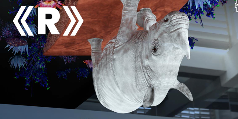 在数字艺术作品《R》中,不同于过去系列作品中庞然大物般的观看常理,参观者通过 Nreal X AR 眼镜看到的是一个七彩倒立持续走动的犀牛,可以走近或是从不同角度观看这只恍若真实存在一般的犀牛。通过手势点击犀牛,还可以播放艺术家柳迪关于这件作品创作理念的介绍语音。