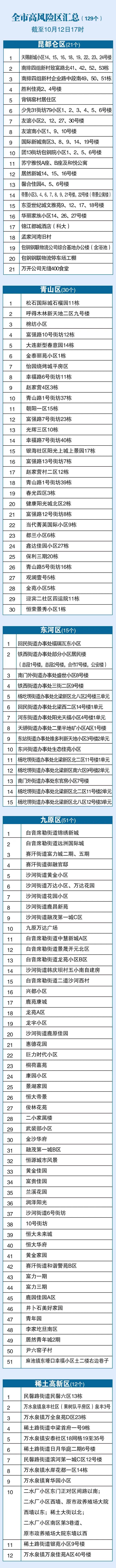 为进一步有效阻断疫情传播风险,切实保障广大市民生命安全和身体健康,根据国务院《新型冠状病毒肺炎防控方案(第九版)》有关规定,内蒙古包头市部分旗县区对辖区区域进行风险调整。截至10月12日17时,包头市有高风险区129 个,中风险区 73个。