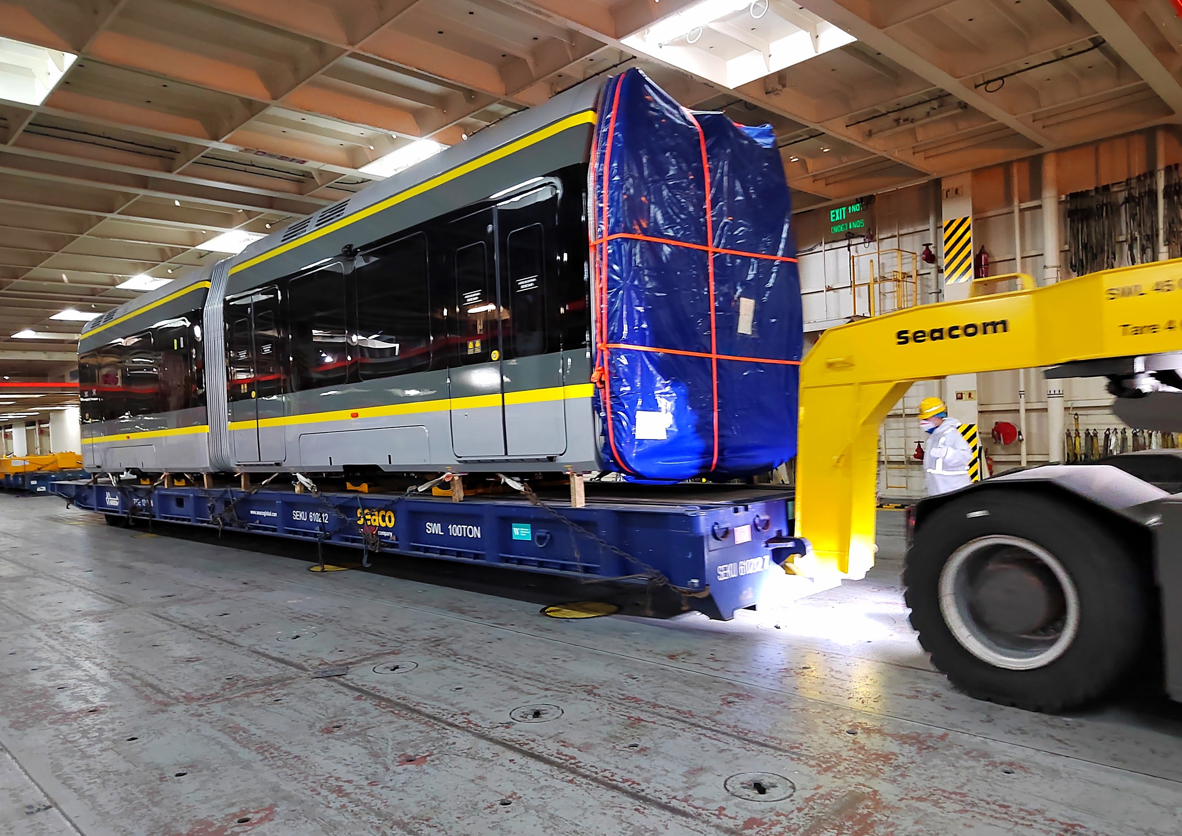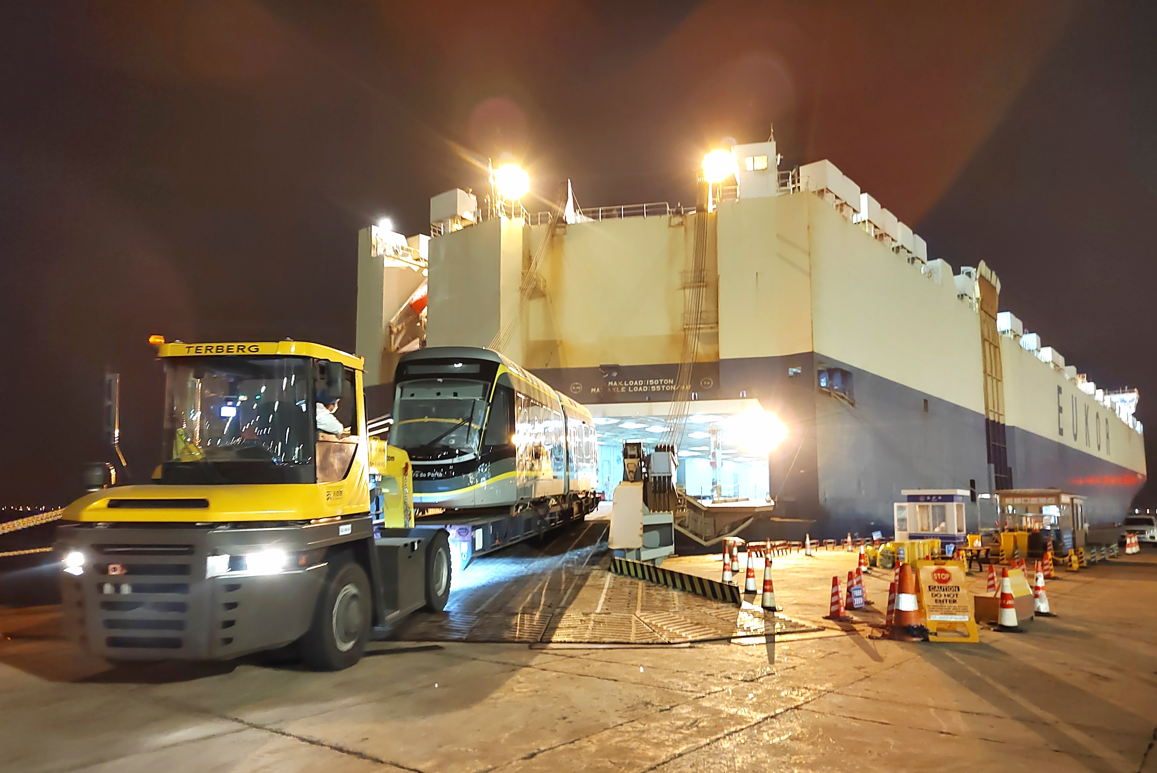 10月13日,“利莎”轮在天津港环球滚装码头顺利完成装船作业,搭载着由中车唐山公司制造的首批两列地铁列车,发往葡萄牙。这批地铁列车是我国首个出口欧盟的城轨项目。