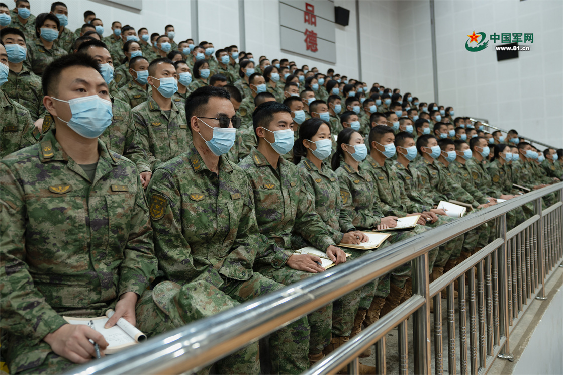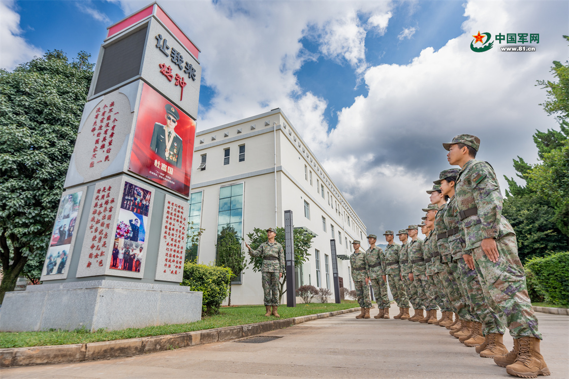 官兵在杜富国“让我来”精神长廊学习。