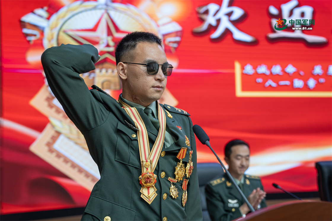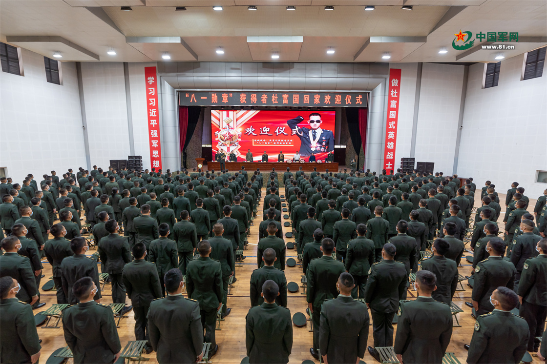 部队举行仪式,热烈欢迎杜富国回家。