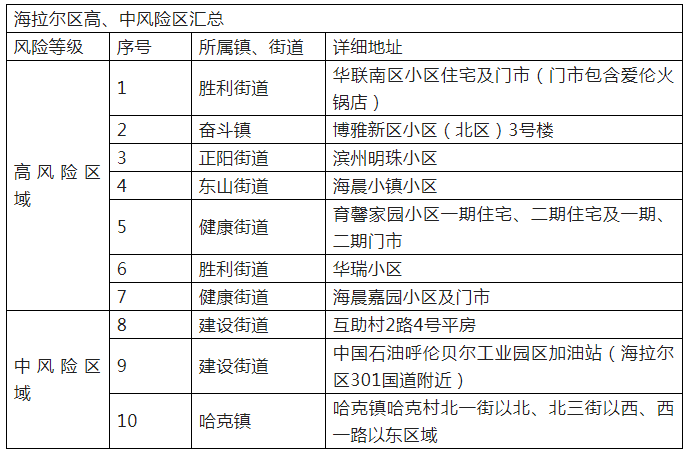 将海拉尔区海晨嘉园小区及门市划定为高风险区域。