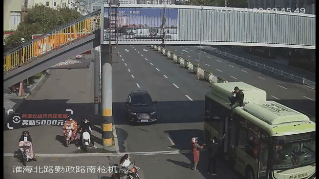 公交车变成“救生垫”的一幕火了