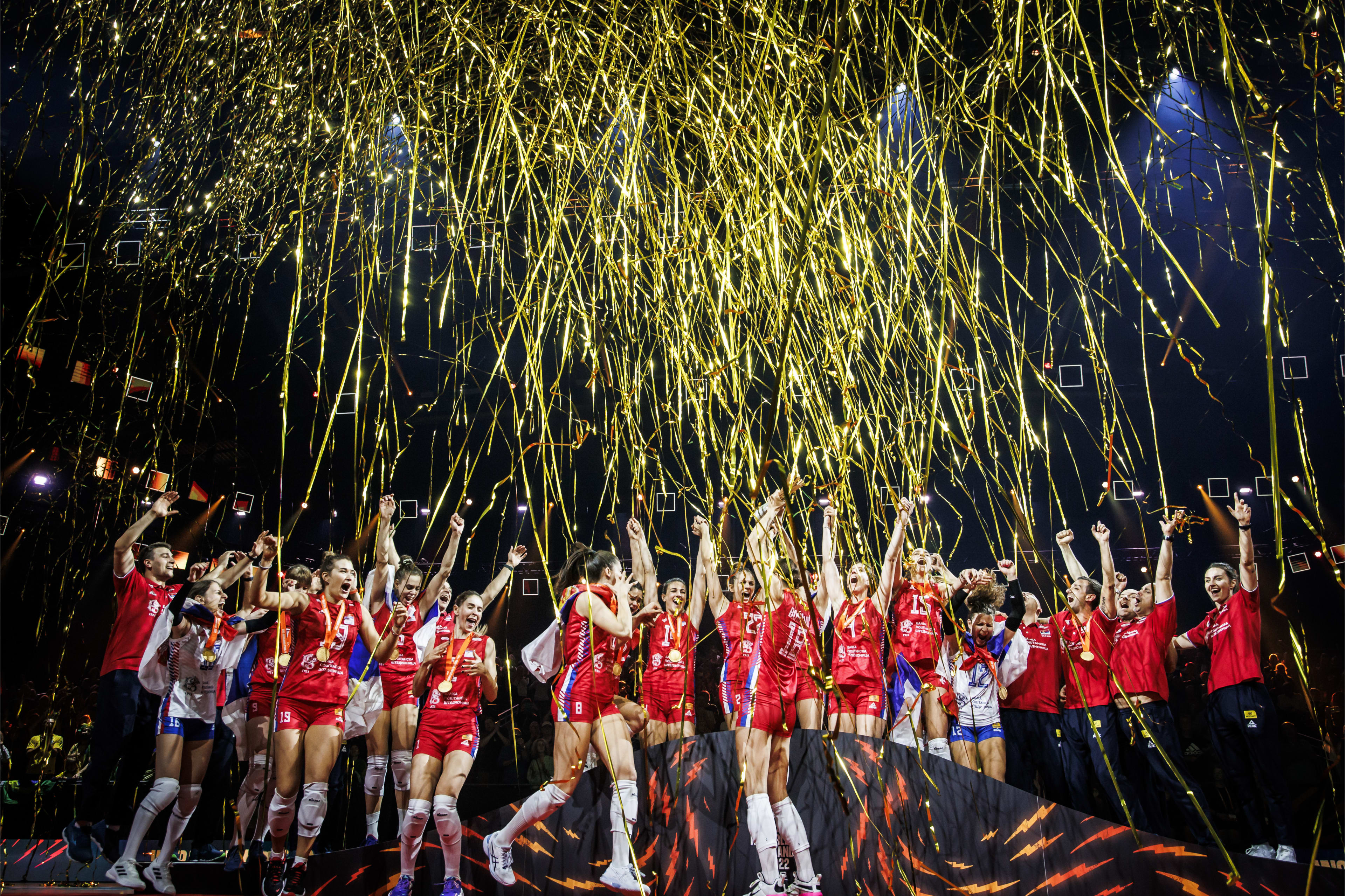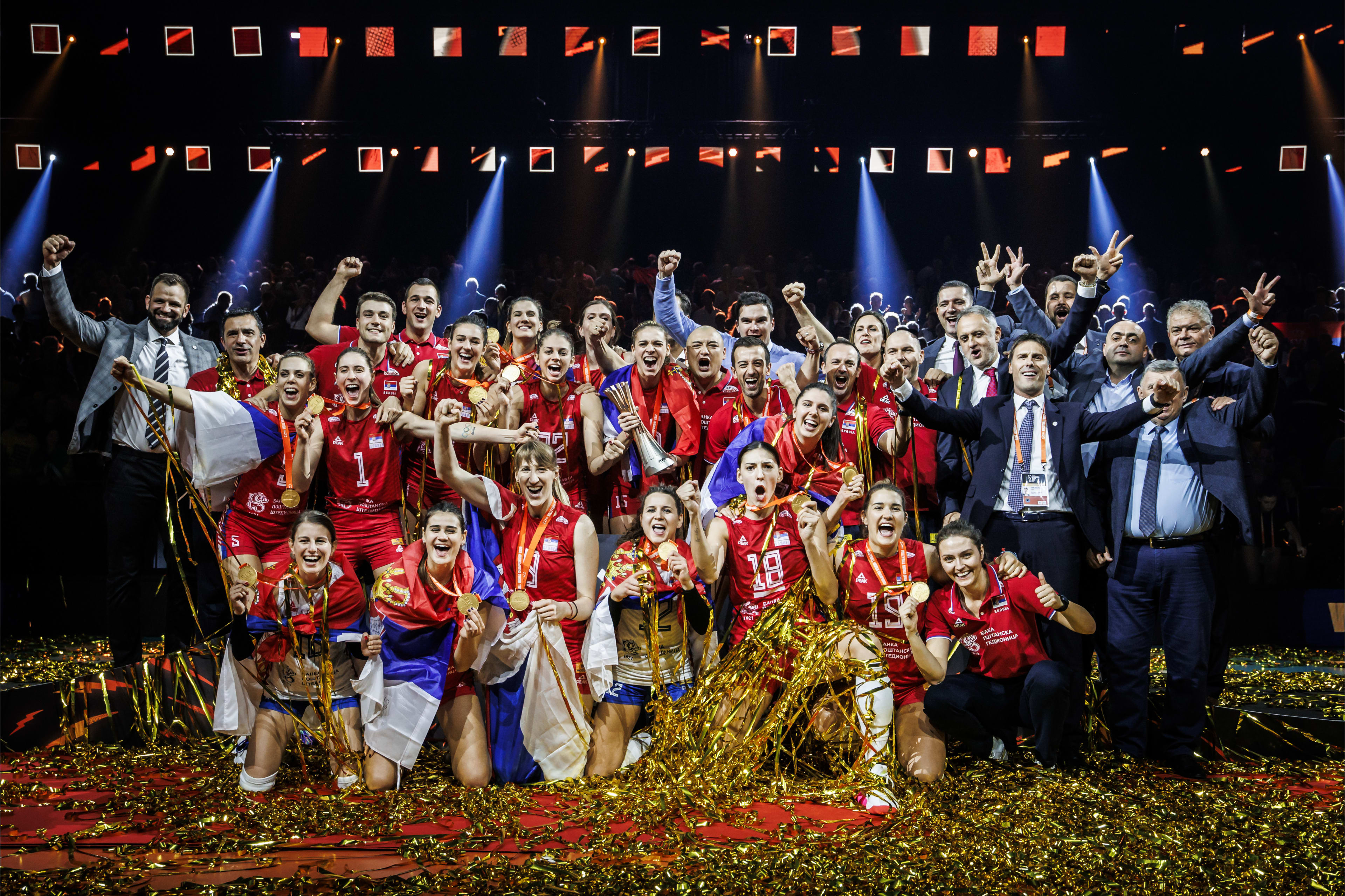 塞尔维亚女排表现十分强势,以3比0力挫巴西队,以十二战全胜战绩成功卫冕,这也是塞尔维亚女排历史上第二个世锦赛冠军,塞尔维亚女排著名球星接应博斯科维奇独揽24分荣膺决赛得分王。同时,塞尔维亚女排荣登世界排名第一的宝座。