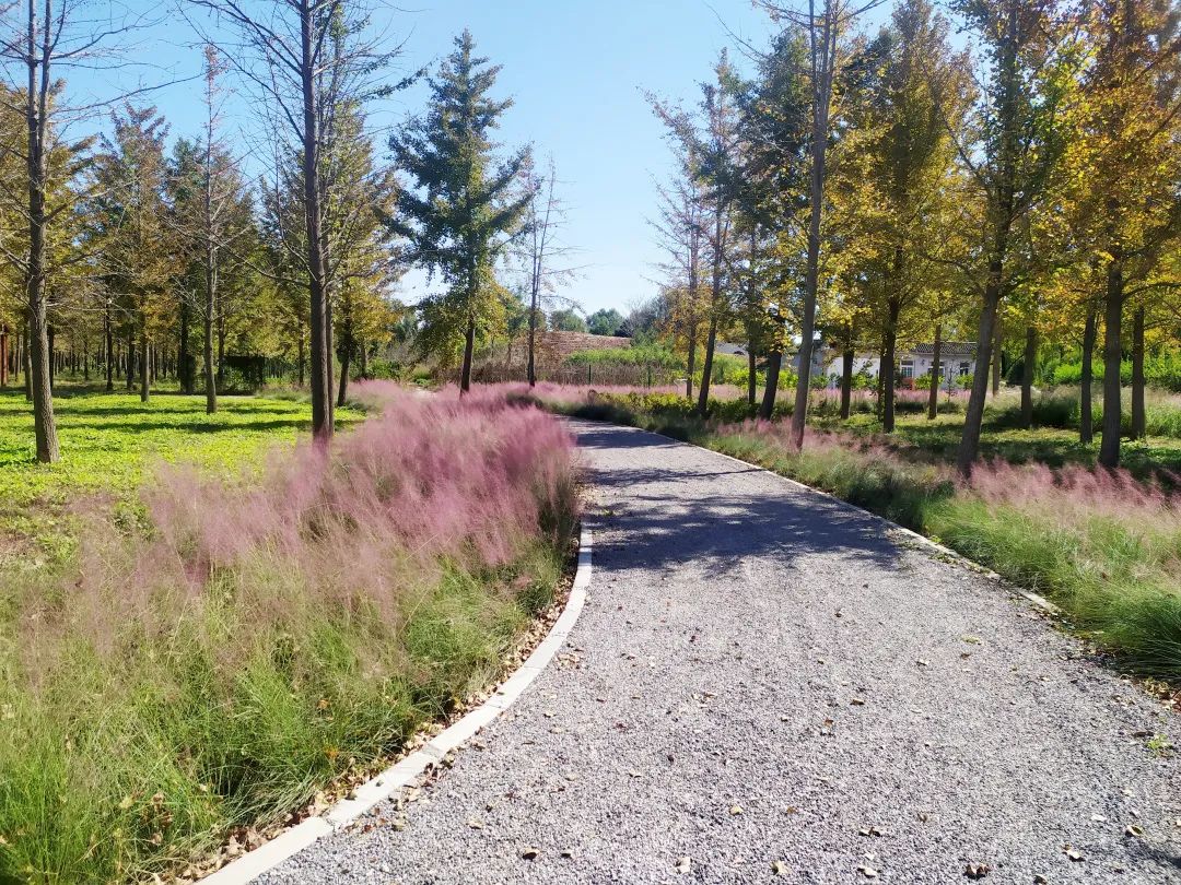 步道两侧连片种植粉黛乱子草,为秋日增添浪漫。
