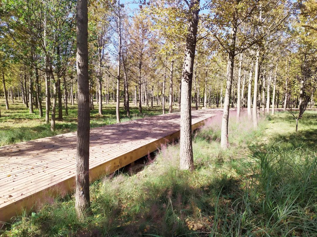 该公园一期建设内容包括木栈道1000平方米、运动场地1600平方米、园路及广场铺装、沥青路、儿童游玩设施、石龙坐凳及野餐桌椅、人工湿地等。