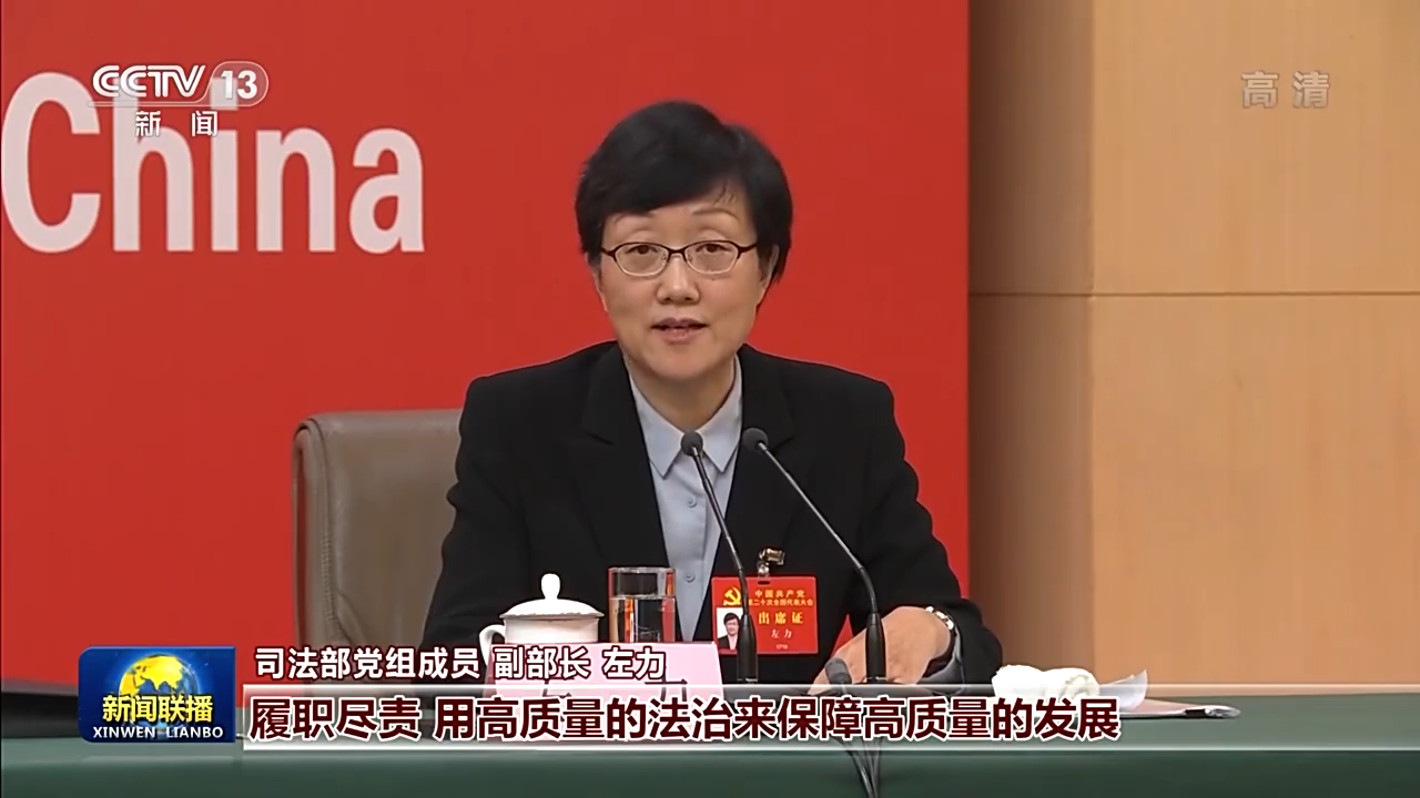 司法部党组成员、副部长 左力:全面贯彻落实党的二十大精神,聚焦一些重点领域和关键环节,履职尽责,用高质量的法治来保障高质量的发展。