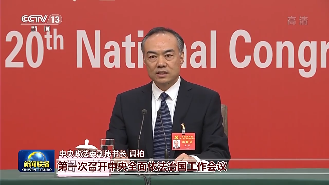 中央政法委副秘书长 訚柏:党的十八大以来,在党的历史上,第一次召开中央全会专题研究部署全面依法治国,第一次组建中央全面依法治国委员会,第一次召开中央全面依法治国工作会议。