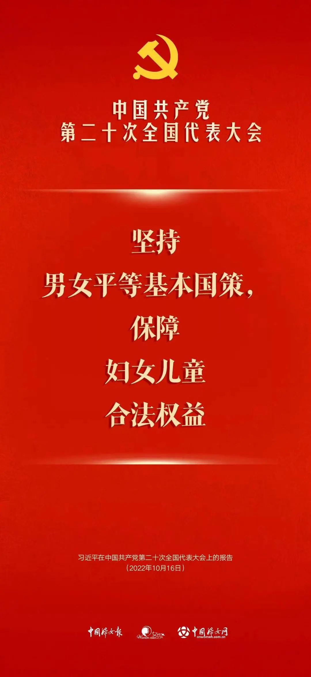 在党的二十大报告中,又一次写入了“坚持男女平等基本国策,保障妇女儿童合法权益”,这是继党的十八大、十九大之后,该表述第三次被写入党代会报告,引发了来自妇联系统党代表的极大关注,大家纷纷表示,这将为实现妇女平等依法行使民主权利、平等参与经济社会发展、平等享有改革发展成果提供更加坚实的政治保证。