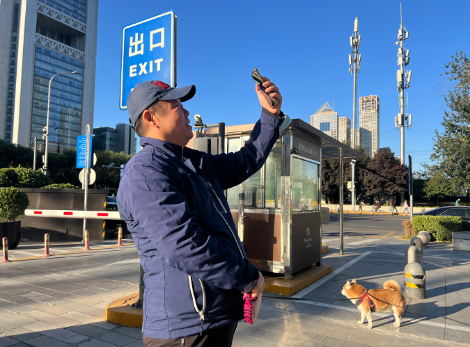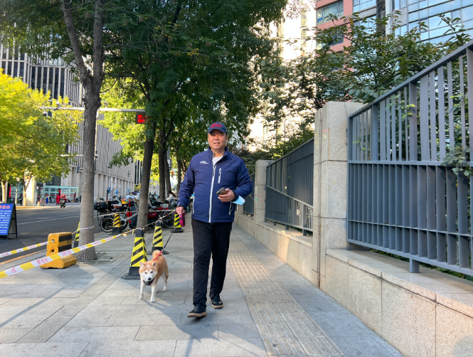清早不到7点,市民邹毅一手拿着手机,一手牵着爱犬“小柏油”,迎着朝阳从家里出发了。