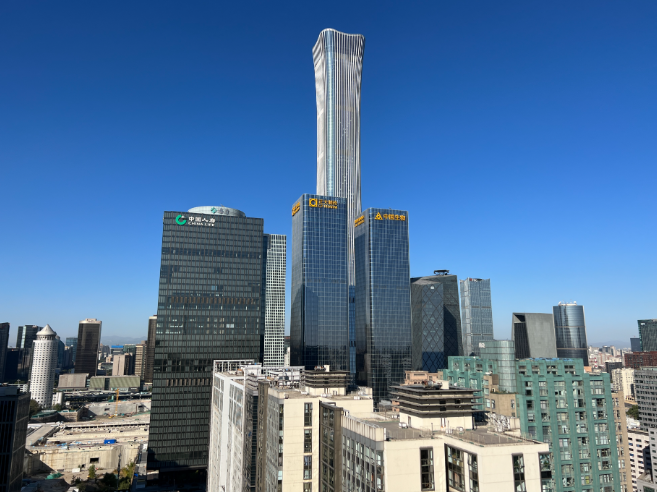站在楼顶拍摄的国贸CBD地区/记者拍摄